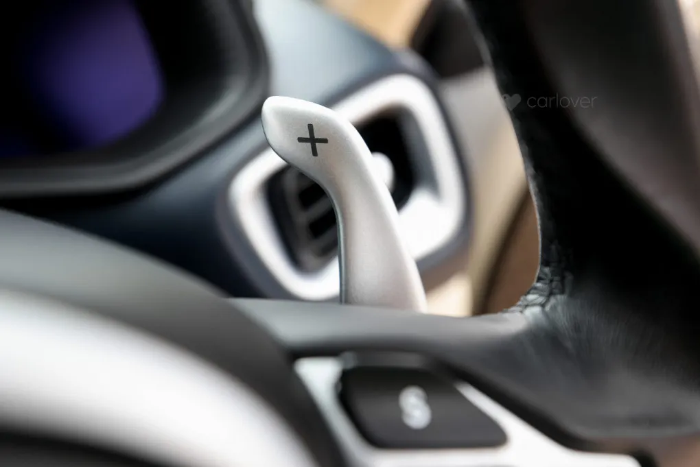 Externally the car has the optional black pack which adds gloss black finishes to the front spoiler, sill trims, rear diffuser and upper rear wing trims, contrasting well with the silver bodywork.