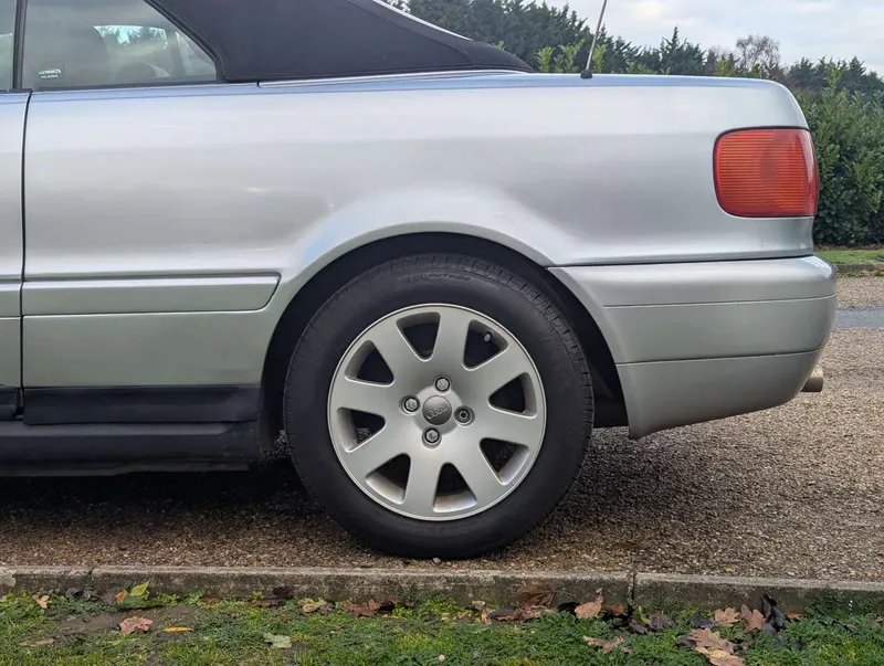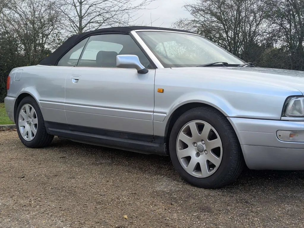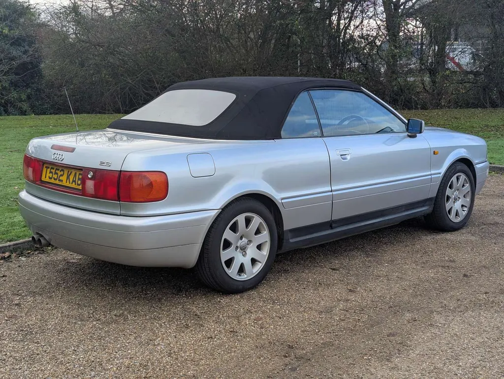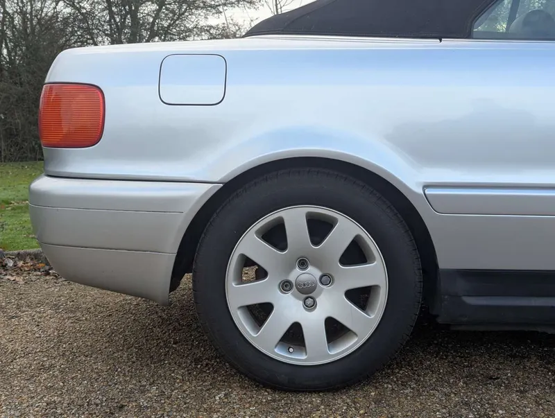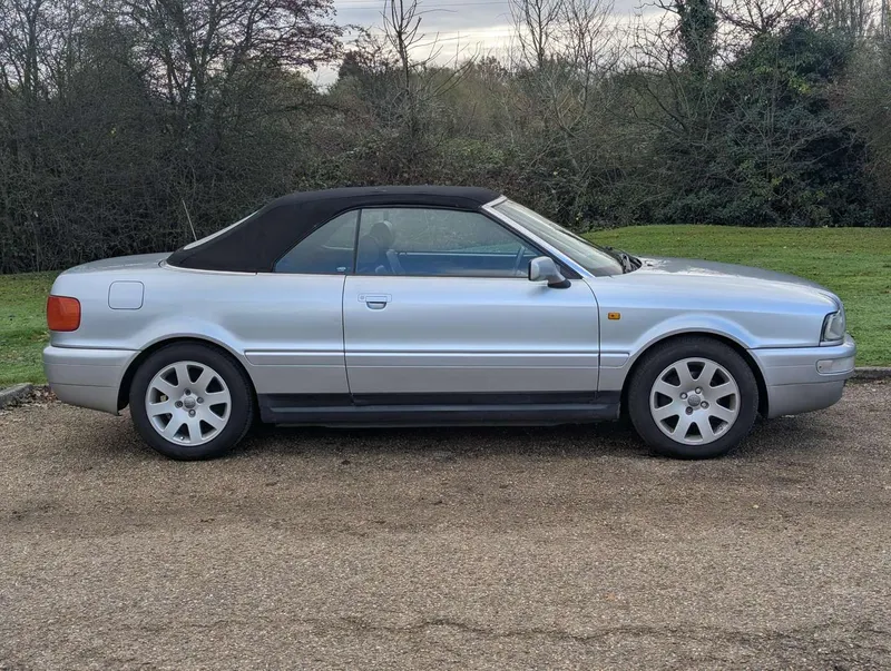 This manual Audi Cabriolet is a well-specced Final Edition model, with 76,905 miles showing on its odometer. The car was first registered on 8th April 1999 and has an MoT to 6th March 2026.The history file contains a good collection of old MoTs and various maintenance receipts, including new belts and coolant pump in 2019 at 71,584 miles, and cosmetic repairs in 2020. In that year the car was also fitted with a custom sports exhaust costing £650, and today it wears Pirelli tyres all round. The car was driven 300 miles to our premises and the vendor describes it as driving well. Recent work has been carried out on the instrument cluster, and all the gauges are now reportedly working correctly.There are six stamps (including the PDI) in the service book, the latest being at 67,763 miles in 2017. Invoices indicate at least 2 services since then.The car is fitted with its original radio, although this is no longer working. Not specified