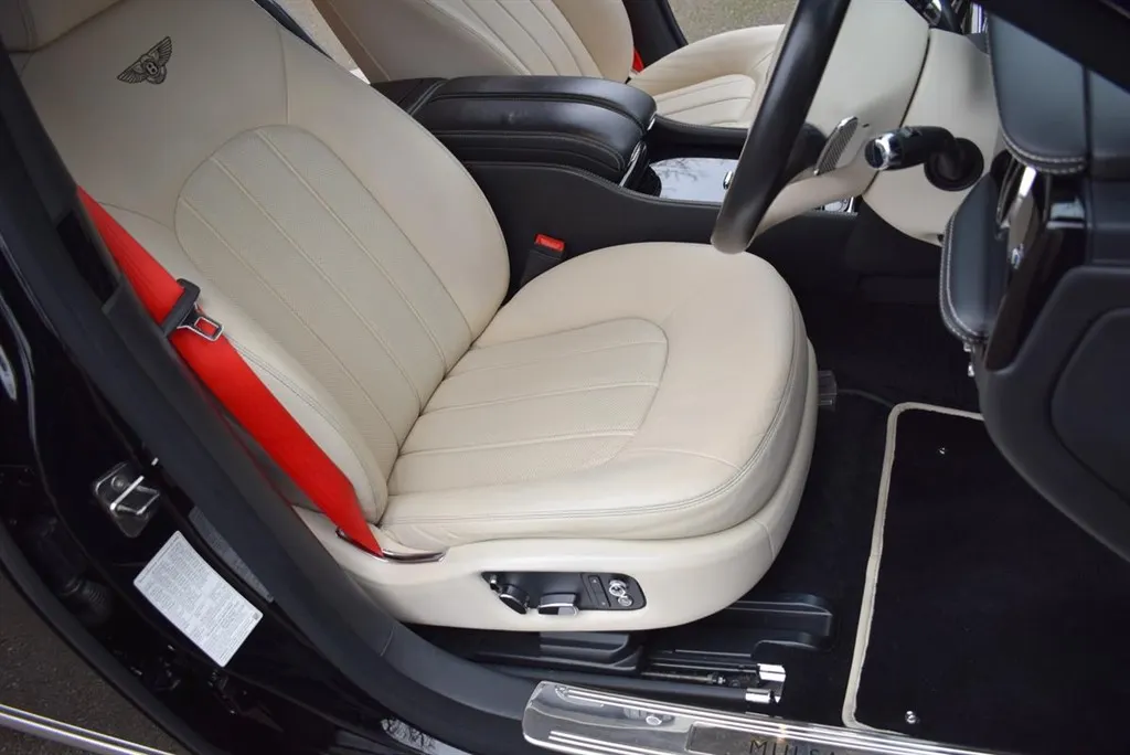 2012/12 Bentley Mulsanne. Finished in Beluga with a fine white coach line. 21 inch five spoke polished alloy wheels. The interior is finished in Linen hide with Beluga secondary hide, with embossed B’s on the headrests and Premier specification, with picnic tables. This car has been maintained regardless of cost by ourselves for the last 8 years. Immaculate condition throughout, outstanding value at £49,995