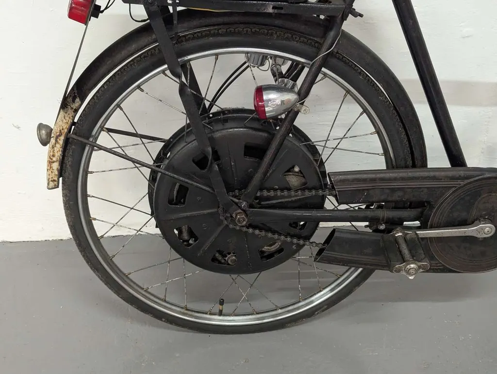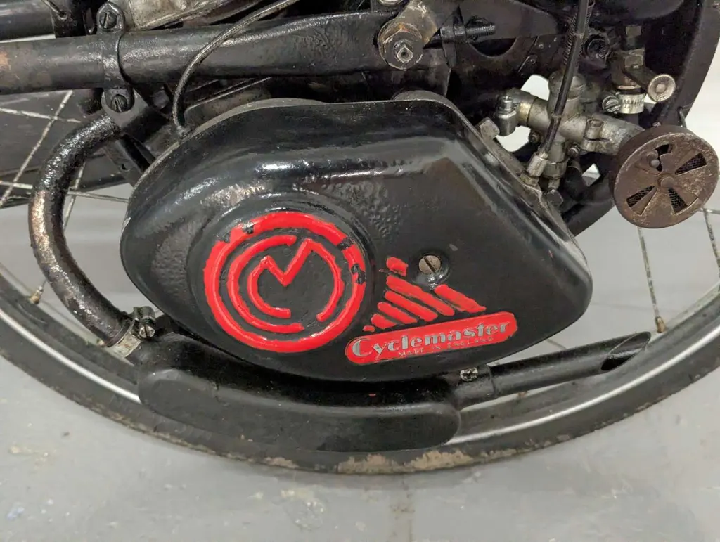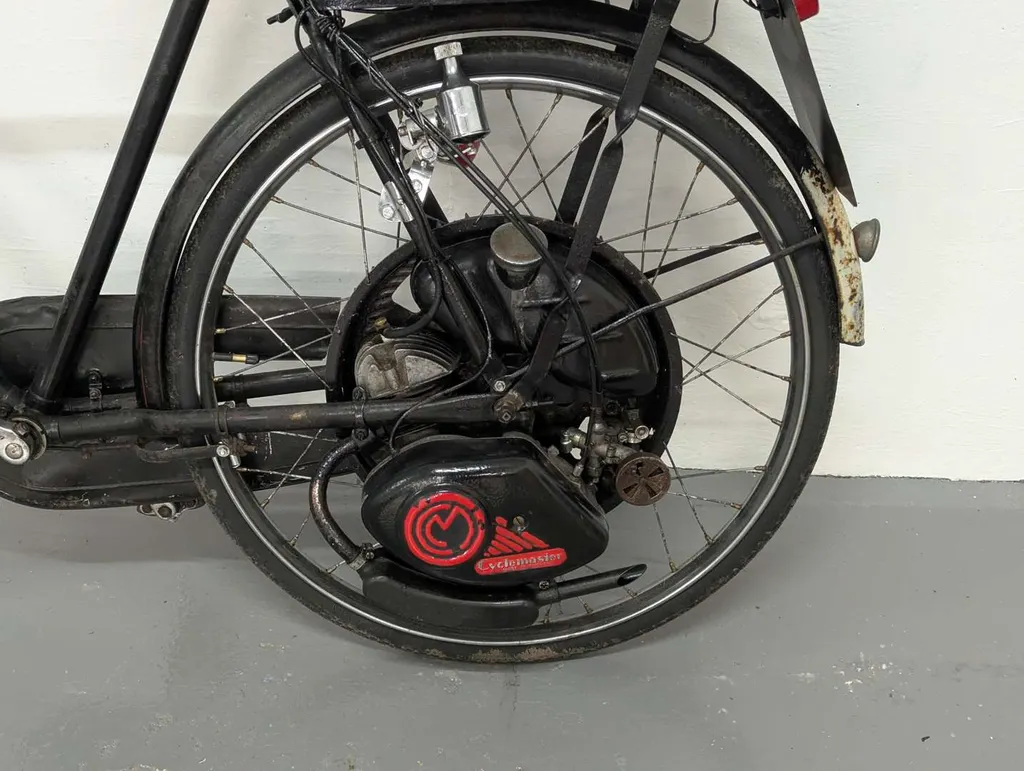 This 25cc Cycle Master it is mounted to a 21" Raleigh bicycle frame, and we are told it has been in almost daily use. In 2018 it was purchased without paperwork by the vendor, and its engine was stripped and rebuilt. In December of that year it was first registered with the DVLA via the National Autocycle and Cyclomotor Club. The bike comes with 2 sets of keys, and its paperwork includes documents relating to its registration, insurance and valuation, club membership, and an its original workshop manual, Not specified