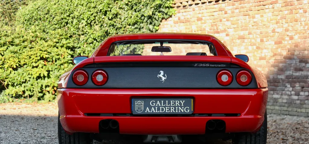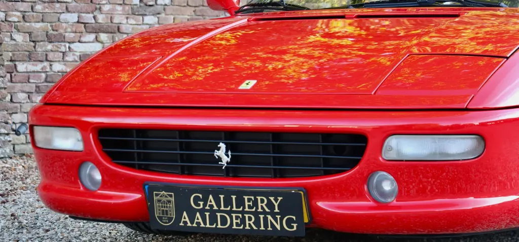 Ferrari F355 GTB – Manual Gearbox, Rosso Corsa with Black Leather Interior Introduced in 1994 as the successor to the beloved 348, the Ferrari F355 is considered by enthusiasts as one of the last Ferraris that puts pure driving sensation, direct engagement, and driver involvement at the forefront. The model marked an important step in the evolution of Ferrari V8s, featuring an all-new 3.5-liter engine, variable valve timing (VVT), and an advanced aluminum chassis. The F355 combines classic Ferrari styling by Pininfarina with cutting-edge engineering, making it an icon among sports car enthusiasts. This 1996 example is a top-quality F355 GTB, originally ordered with the coveted manual gearbox, regarded by purists as the ultimate driving experience. It is a Dutch-delivered “Euro-spec” example via Kroymans/Munsterhuis, ensuring authentic European specifications and exceptional build quality. Technically, the car is in excellent condition thanks to recent extensive maintenance, including the timing belt, and the fact that no cost-saving measures have been applied since new. All work has been carried out by recognized Ferrari specialists and official dealers, ensuring this F355 GTB is fully reliable and ready for immediate driving enjoyment. The exterior is finished in iconic Rosso Corsa, complemented by a black leather interior, a timeless combination that never goes out of style. The car comes with complete history: Ferrari board pouch, original booklets, and invoices, fully documenting both authenticity and maintenance history. With only 62,000 km from new, this F355 GTB offers a rare combination of originality, extensive maintenance, and pure Ferrari driving pleasure. For collectors and classic Ferrari enthusiasts, this is a unique opportunity to acquire a manual gearbox iconic GTB in top condition, a car that exceeds expectations both on the road and in a collection. Gallery Aaldering is Europe’s leading Classic Cars specialist since 1975! Always 400 Classic and Sportscars in stock, please visit www.gallery-aaldering.com for the current stock list (all offered cars are available in our showroom) and further information. We are located near the German border, 95 km from Düsseldorf and 90 km from Amsterdam. So easy traveling by plane, train, taxi and car. Transport and worldwide shipping can be arranged. No duties/import costs within Europe. We buy, sell and provide consignment sales (selling on behalf of the owner). We can arrange/provide registration/papers for our German (H-Kennzeichen, TÜV, Fahrzeugbrief, Wertgutachten usw.) and Benelux customers. Gallery Aaldering, Arnhemsestraat 47, 6971 AP Brummen, The Netherlands. Tel: 0031-575-564055. Quality, experience and transparency is what sets us apart. We look forward to welcoming you in our showroom