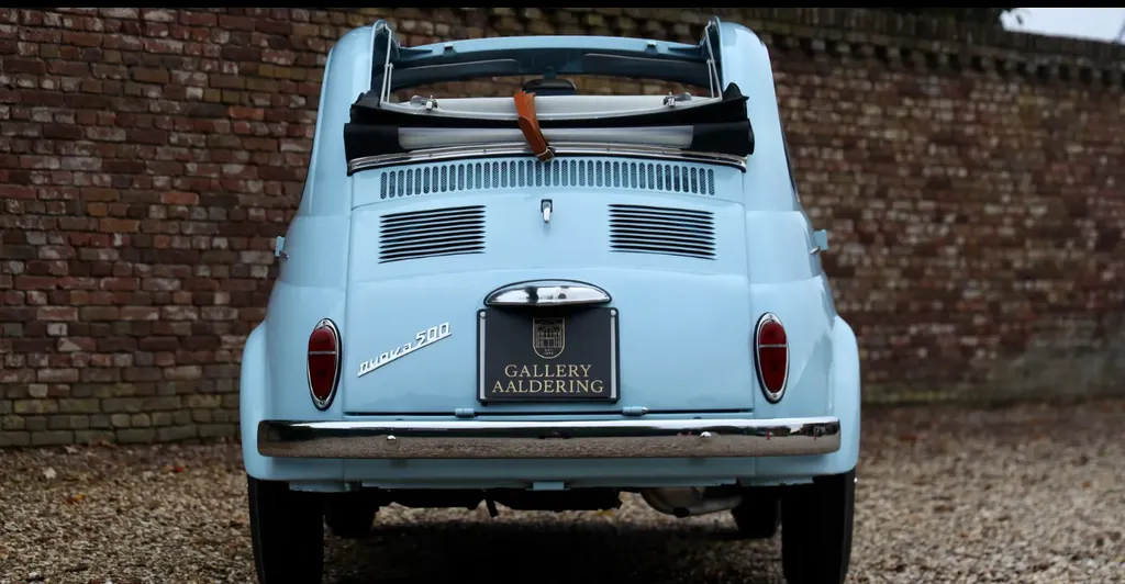 The Iconic Fiat 500 in Exceptionally Fine Condition Charming, isn’t it? This 1958 Fiat 500N Trasformabile is a small marvel of Italian engineering, culture, and optimism, all wrapped into less than three meters of pure emotion. Finished in a delightful light blue with whitewall tires, this example has been fully restored to original specifications, down to the very last detail. Everything is just right: the deep luster of the paintwork, the elegant upholstery, the correct identification plates, and the meticulously finished engine bay. Early model The 500N Trasformabile represents an early second-year production of what is now recognized as a postwar icon: the Nuova 500, type 110. This is the version with the famous “suicide doors”, rear-hinged doors that give the car its unmistakable charm. When introduced, it proudly carried the slogan: “Un successo della tecnica, un progresso della economia.” It wasn’t an exaggeration, it was a promise fulfilled. A symbol of freedom and optimism In late 1950s Italy, the Fiat 500 was more than just transportation, it was freedom. A symbol of hope and accessibility that allowed families and young couples to experience mobility for the first time. With its rear-mounted, air-cooled two-cylinder engine, the 500 wasn’t built for speed, but for joy. It zipped through the narrow streets of Turin, Rome, and Naples with a smile and always in style. The Trasformabile stood out with its unique roof design. While later versions featured a half-opening top, this early model’s roof rolled all the way back, allowing its passengers to drive quite literally under the Italian sun. A semi-convertible ahead of its time — breezy, cheerful, and unmistakably Italian. Driving a Fiat 500 Trasformabile feels like savoring a perfect espresso: small, intense, and full of character. Rare and remarkable This particular example is among the rarest surviving variants of the early production series. Only a handful remain in such condition, and this one comes with comprehensive documentation and history, making it all the more special. Every detail exudes authenticity — from the refined typography on the instruments to the delicate click of the door latch. That the Fiat 500 went on to become a worldwide icon should surprise no one. It captured the hearts of millions and, in 1959, was awarded the prestigious Compasso d’Oro, becoming the first automobile to ever receive the famed Italian design prize. Deservedly so — this was never just a car, but a masterpiece of industrial design. Today, when you look at this 500N, you see more than a classic. You see a story of innovation, simplicity, and human ingenuity. It reminds us that greatness is not always found in power or size — sometimes it lives in modesty and perfection. Contact Gallery Aaldering This Fiat 500N Trasformabile is a celebration of Italian joie de vivre — a piece of history that, like its spirit, never ages. Contact Gallery Aaldering today and experience this beautifully preserved Fiat 500 for yourself. We ship our vehicles worldwide, inquire about the possibilities.