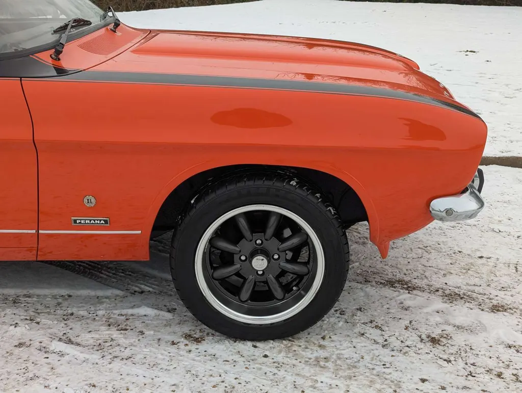 This Ford Capri MkI is registered as a 1600 model, but is in fact a replica of the legendary South African ‘Perana’ model, equipped with a Mustang 5.0-litre V8 and automatic transmission. The odometer shows 22,996 miles and the voluntary MoT remains valid to 27th February 2026.The car has been restored to a lavish specification that includes disc brakes all round, 15in deep-dish alloys, and a retrimmed interior with heated windscreen and double-DIN infotainment system. Paperwork includes a printed summary of works totalling over £22k, a recent receipt (£444) for manifold repairs and a new speedo cable, and photos showing its professional respray in 2022. The vendor advises that it has also recently received a new coolant pump, fuel tank, radiator and fuel pump.The V5C is present, indicating 5 former keepers, one of whom owned the car for 43 years. The latest acquired the car in 2022, and it was first registered on 13th August 1969. Not specified