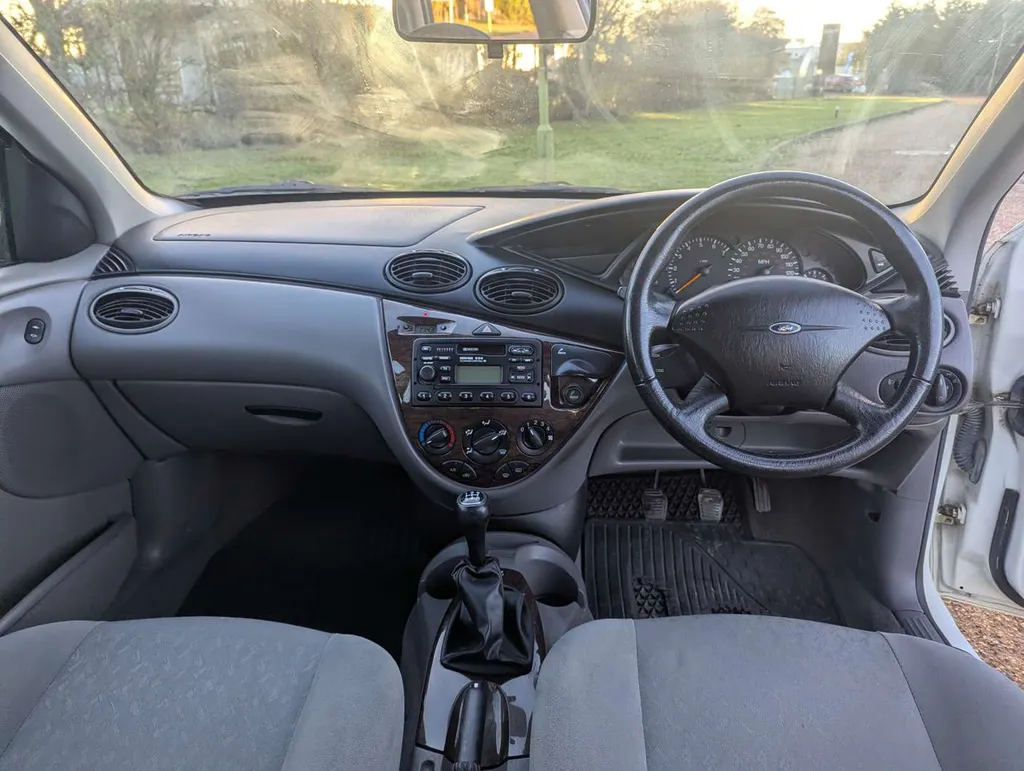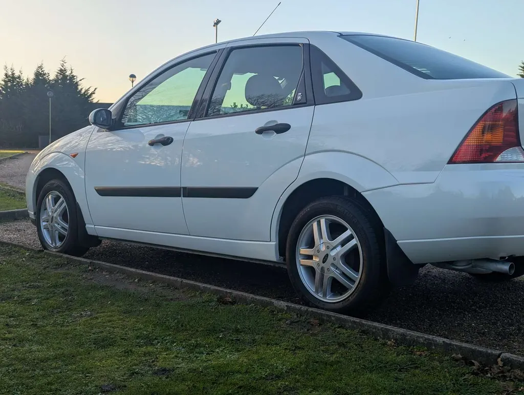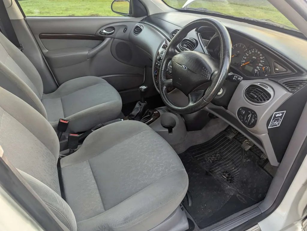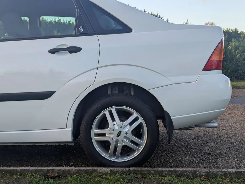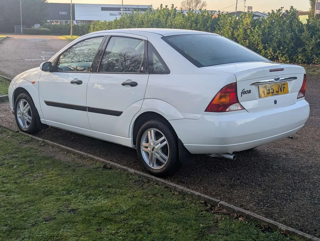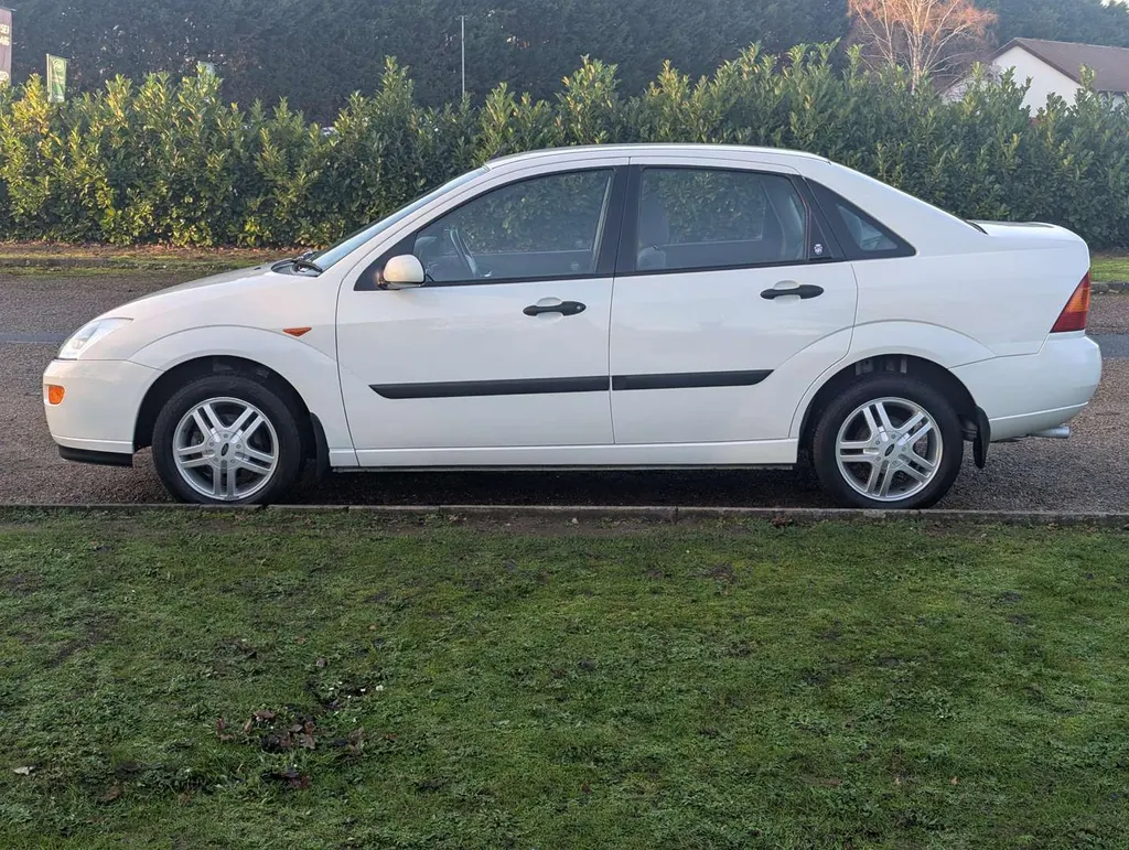 This well preserved Mk1 Ford Focus saloon is a high-spec Ghia example, finished in Diamond White, with a dark grey interior equipped with air conditioning, electric seats and heated screen. It has been owned by a grandfather and grandson from nearly new, and the V5C shows only 2 former keepers.  The car was originally sold by John Grose Ford Centre in Kings Lynn, first registered on 31st March 1999. It is accompanied by a few recent MoTs, spare keys and original handbook pack, including service logbook. This contains 12 service stamps up to 58,913 miles in 2023, including a cambelt change at 32k miles in 2011. Today the odometer is showing 58,948 miles.We're told the Focus has had a recent service, and its only MoT advisory has been attended to. The MoT certificate is valid to 17th August 2026, and the vendor describes the car as "driving perfectly". Not specified