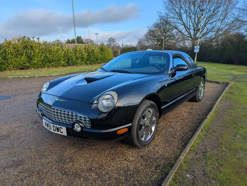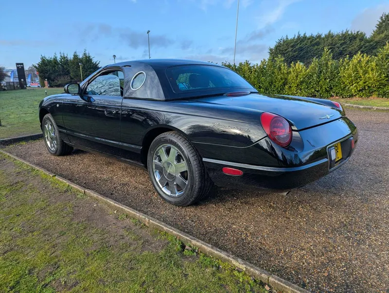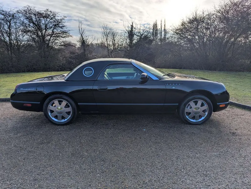 This Ford Thunderbird is finished in Evening Black, with a Midnight Black leather interior. It's equipped with Ford's 3.9-litre 32-valve aluminium V8 with 5-speed automatic transmission, and its original features include automatic headlamps, speed-sensitive wipers, power-adjustable steering column, CD multichanger, 17in chrome wheels and removable hardtop. This example also features the optional ‘black accent package’. It has an advisory-free MoT to 25th August 2026, and the odometer shows only 43,311 miles.The car is believed to have been imported some years ago and left unregistered in dry storage. Seeing its potential, it has recently been recommissioned it, and installed the rear fog and reversing lights necessary for UK registration. Their work included a full service, new front and rear suspension with new wishbones, disc brakes, calipers & pads, fuel pump, rear ABS sensors, soft-top, new tyres all round, and fitment of an ‘as-new’ soft-top. The car is also equipped with a fob-operated battery isolator.Paperwork includes the car's Ford build sheet, a copy of an old Connecticut registration certificate, HMRC letter containing NOVA reference number, current MoT, and the current V5C. First UK registration was on 1st October 2025.The vendor advises that the radio currently does not work while the car is in motion, but will work when not in gear. Not specified