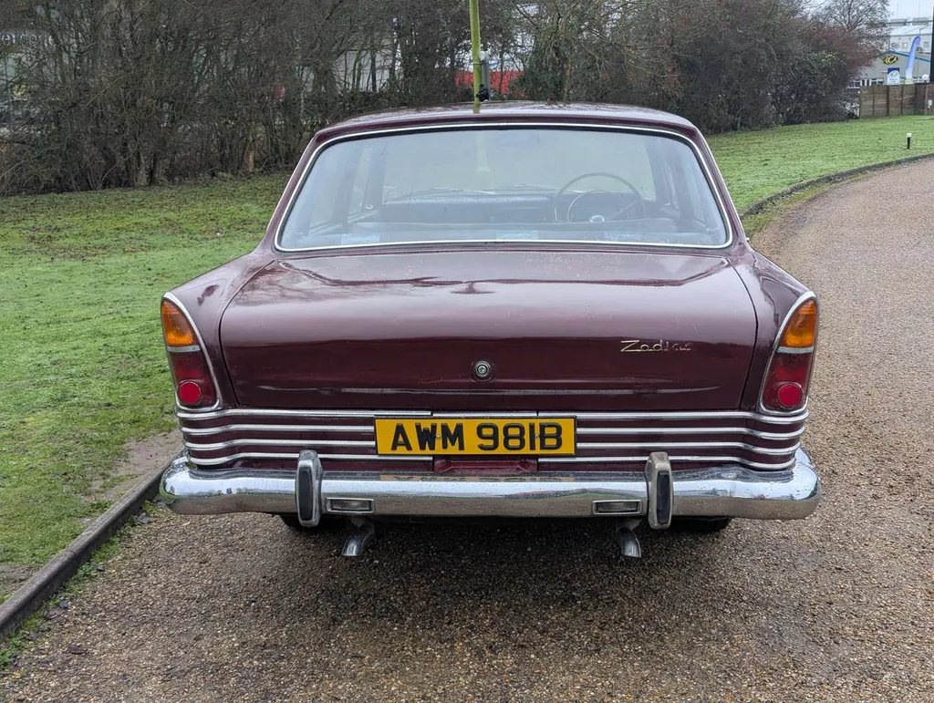 This Ford Zodiac MkIII, finished in maroon with a grey leather interior, is showing 4153 miles on its odometer. The vendor tells us that it "runs and drives well" and believes that there is "no welding required." There are no receipts or maintenance history with the car, but it is believed to be in unrestored condition. It was first registered on 19th June 1964, and is accompanied by the current V5C. Not specified