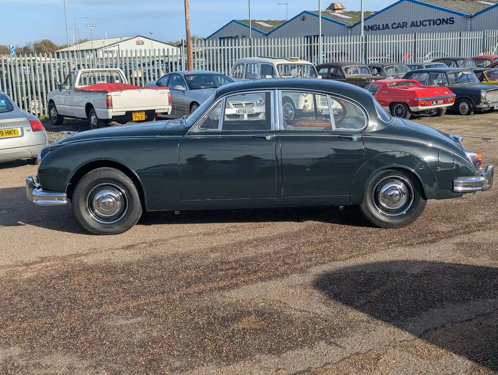 This green Jaguar Mk2 is a manual gearbox car with overdrive. It comes with a well-preserved buff continuation logbook, which reveals that it was first registered on 28th September 1967, finished in green, and its latest keeper took ownership in 1970. The car's green leather interior and green headlining remain nicely preserved, and it is supplied with its original toolkit. Comes with a new stainless steel exhaust system.The car is accompanied by old-style MoT certificates, some technical information and printed materials relating to the 60th Anniversary Weekend Celebration in 1995 at Brown's Lane, in which it participated. Also present is the original handbook pack containing a service book which records 9 services up to 28,825 miles in 1978. Today the odometer is showing 55,560 miles. The car has not been MoT tested since DVLA records were digitised in 2005. Recommissioning will therefore be required, but this has the hallmarks of a rewarding project. Not specified