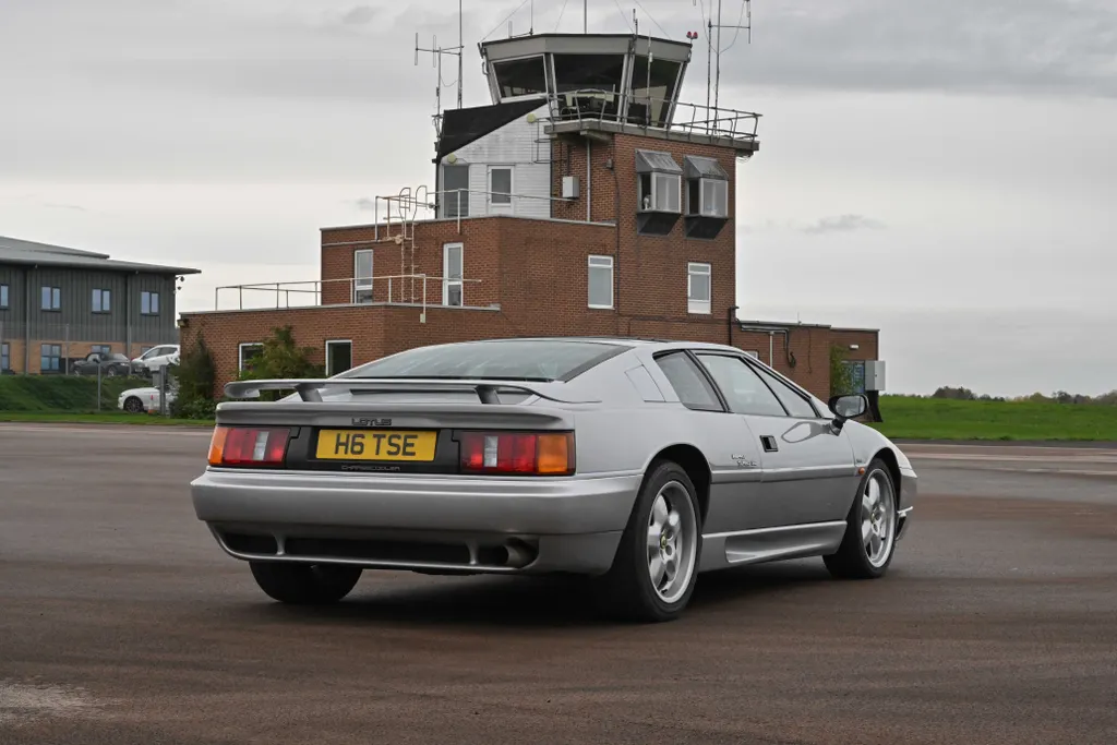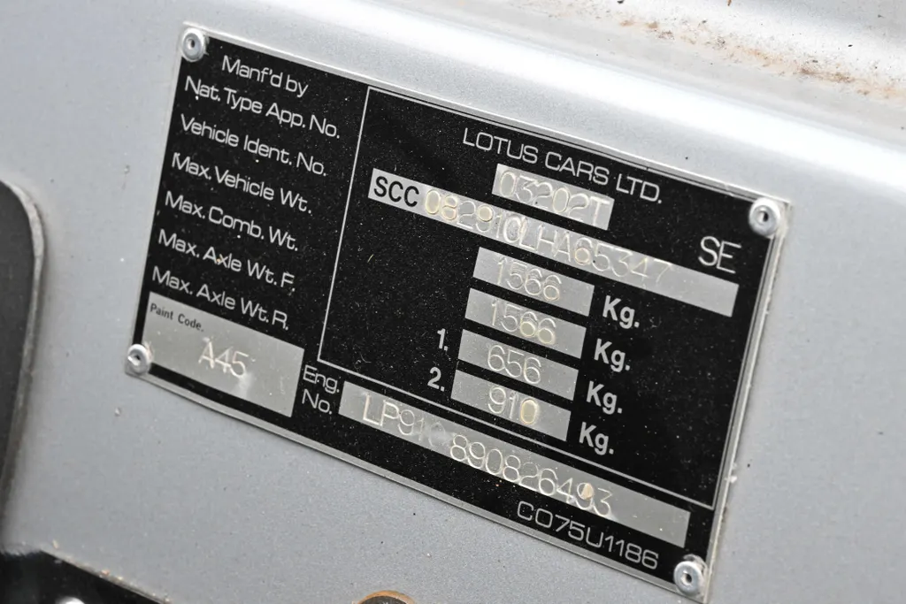 This handsome Lotus Esprit was the Earls Court Motor Show car in 1989 and still looks resplendent with its silver coachwork and blue leather trim. The fastidious previous owner had H6 TSE for twelve years and lovingly looked after it until selling the car through Historics in November 2016 with a mileage reading 72,343 miles. The current owner has covered less than 1,000 miles in the car but has kept it maintained to the highest of standards. The work he has carried out includes replacing the gearbox and fitting a new clutch, fitting new front and back crankshaft seals, replacing the fuel tanks with custom aluminium tanks and fuel crossover pipes, fitted with the larger V8 Brembo brakes with larger vented brake discs and a new water pump. A significant history folder accompanies this Lotus. With a sports exhaust and ample power available, this is a car that offers pleasure and fun in abundance. Presented in virtually unmarked condition, this Lotus Esprit Turbo SE is supplied with a V5C registration document and a current MoT test certificate. A real head turner offering supercar performance at a fraction of the cost. Consigned by John Tomlin