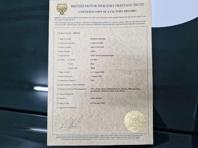 This lot will be auctioned via Iconic Auctioneers, Online Auction - 29th January on Thursday the 29th of January, Online. Background: The MGB is one of the most iconic British sports cars, with over half a million produced between 1962 and 1980. Offering a winning combination of affordability, practicality and classic driving enjoyment, the MGB remains a popular choice for both road and race use. With full parts support and active club backing, these cars are widely used in historic competition, ranging from accessible entry-level events to high-profile international series. The Car: Originally built as a left-hand drive export model, this MGB was finished in Iris Blue with a blue interior and appears to have spent most of its life in the United States. It returned to the UK in February 2020 and has since undergone a comprehensive restoration and rebuild to full competition specification. The shell is understood to be an early narrow tunnel body, stripped back to bare metal and refinished in dark green with an Old English White hardtop. The car is now right-hand drive and presents in excellent cosmetic condition. Though the file does not include detailed invoices, we are informed the mechanical specification is as follows: a rebuilt five-bearing ‘18V’ engine bored to 1950cc (83.5mm), close-ratio gearbox, 4.1 axle ratio with limited slip differential, competition suspension with uprated springs, dampers and hard bushes, full new braking system with transparent cylinders, points ignition, new wiring loom with all new electrical components, and Minator wheels with Dunlop Racing tyres. The car is running and driving following its restoration but has not yet been set up or rolling road tuned. The engine has been freshly built and is currently filled with Millers running-in oil. As with all competition cars, buyers should satisfy themselves as to the currency and compliance of the safety equipment fitted. We are aware of the following items requiring attention: The seat, harnesses and fire extinguisher are all out of date. The roll cage currently lacks door bars. A 20-litre unbaffled fuel tank is fitted. No FIA HTP papers are present due to the enlarged engine capacity. With its current specification, the car would be eligible for events such as the CSCC Swinging 60’s and Equipe 70’s. If an 1800cc engine were to be fitted, this pre-1966 shell would be eligible for FIA papers and could then participate in series such as the Motor Racing Legends ‘Generations Trophy’. With two FIA cars already consigned for the forthcoming Race Retro auction, this example offers an affordable and freshly restored gateway into one of the most competitive and enjoyable historic racing classes. Once correctly set up, it has the potential to be a competitive and attractive entry in its current form, or a strong basis for FIA homologation. Location: BuckinghamshireSeller: Private