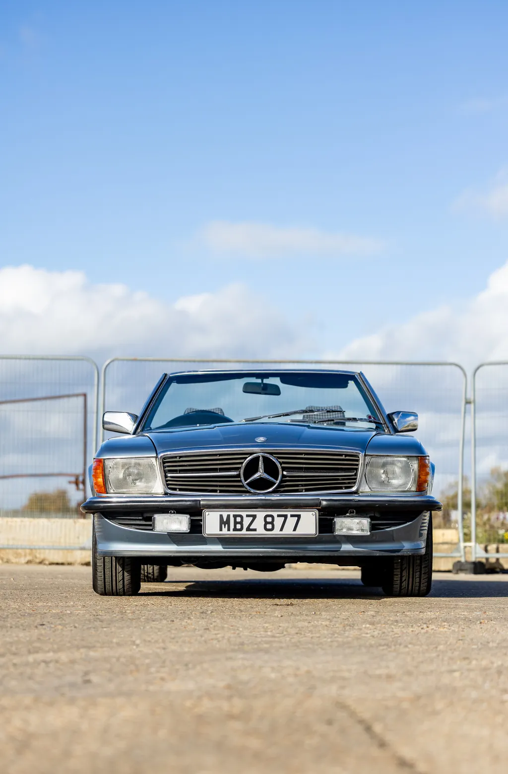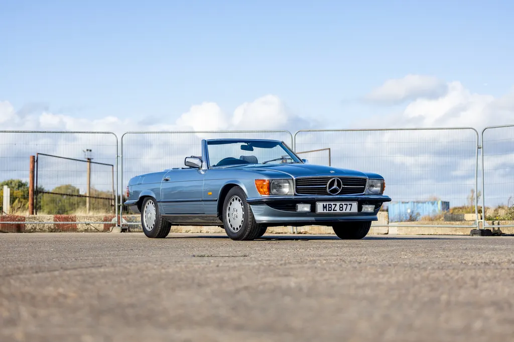 This stylish example of the Mercedes icon was supplied by franchise dealer Normands of Park Lane, London and registered in January 1987. The car presents nicely in pale blue metallic coachwork with a classic Mercedes-Benz contrasting tartan check interior and benefits from a desirable factory hardtop. The original service book is present and shows 14 service stamps and it's MoT test certificate is valid until the 8th June 2026. The sale also includes the cherished number plate MBZ 877. This sensibly priced SL is ready to be enjoyed. Consigned by Dominic Lake