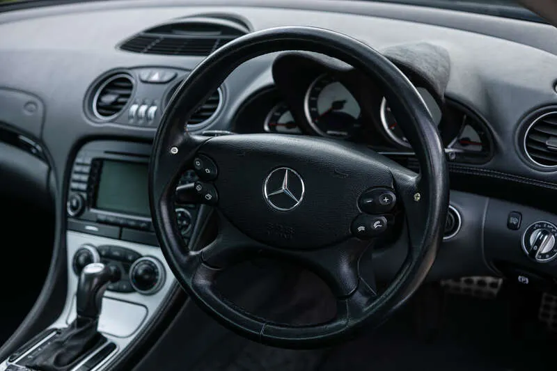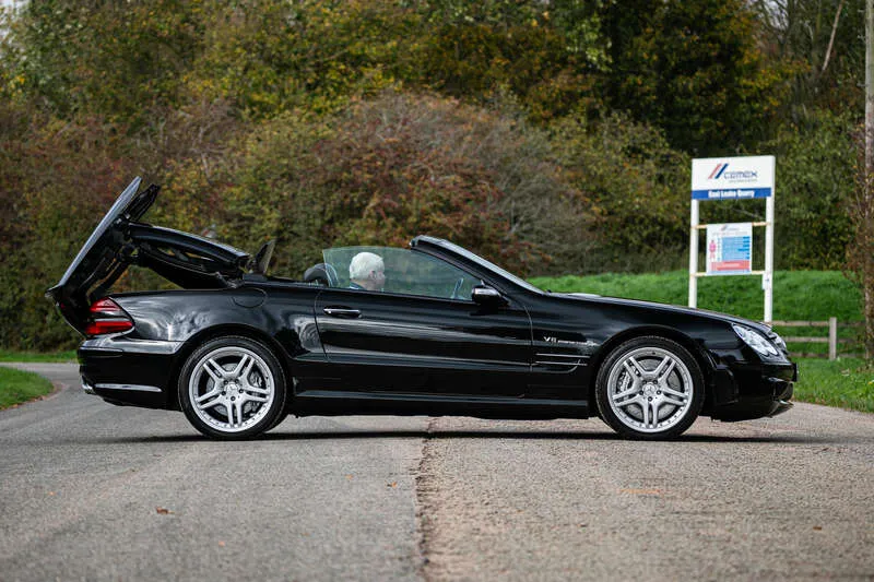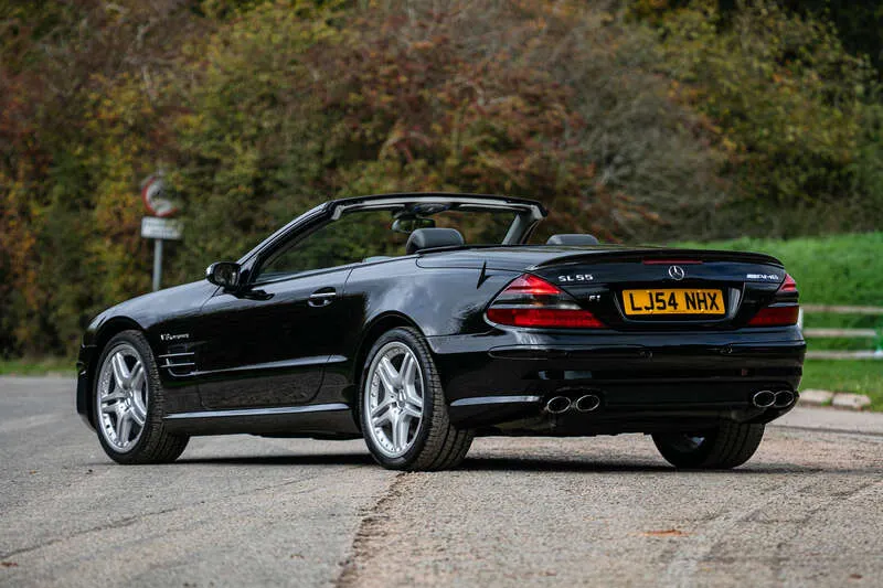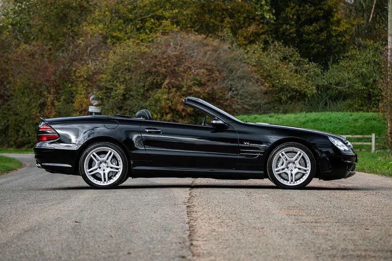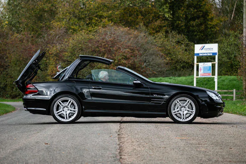 This lot will be auctioned via Iconic Auctioneers, The Iconic Sale at the NEC Classic Motor Show 2025 on Saturday the 8th of November, NEC, Birmingham, B40 1NT. The R230-generation Mercedes-Benz SL remains one of the most elegant and technically advanced models of its era, a car that combined timeless design with formidable performance. At the very top of the range sat the SL55 AMG, powered by a hand-built, supercharged 5.5-litre V8 producing some 493bhp. It was a car capable of effortless long distance touring yet, with a turn of speed that placed it firmly in supercar territory. This particular car is further distinguished by the coveted and costly P030 F1 Performance Package, an £8,500 option when new. This rare upgrade sharpened the suspension, braking and steering responses, bringing the SL55 even closer to the character of AMG’s motorsport projects. Few were specified with the package, making this a highly desirable example of the breed. On offer here is an original UK-supplied, right-hand drive SL55 first registered on 1st October 2004 and finished in Obsidian Black with Anthracite Grey leather. The V5C displays only one former registered keeper and the car has been with our vendor for the last ten years. The very high specification includes the panoramic glass vario-roof, Keyless Go, comfort seats, Parktronic, tyre pressure monitoring system, Linguatronic voice control, SatNav, TV (analogue), CD changer with MP3 input, original Nokia phone, garage door opener, luggage nets and straps, sump shield, heated washer system and the P030 F1 performance package. The indicated mileage of 43,227 miles (at the time of cataloguing) is supported by a detailed service history which includes 12 recorded services, the stamped service book, Mercedes-Benz electronic records, specialist invoices, old MOTs and Tax Discs, and even the original purchase receipt for €158,000. It's accompanied by both keys, the original toolkit, unused puncture repair kit and compressor, and the current MOT is valid until March 2026. Early in its life Mercedes replaced the boot seals under recall. The engine mounts have also been replaced (genuine Mercedes parts) and the car's most recent service was on 8th August 2025 at 43,170 miles by a marque specialist. This low-mileage, one former registered keeper SL55 AMG is made all the more special by its rare F1 Performance Package. Classically styled, well specified and supported by an impressive history file, it offers an intoxicating mix of power, luxury and usability, and is increasingly recognised as a true modern classic from the golden age of AMG. We invite and encourage your inspection at our Iconic NEC Classic Motor Show Sale.