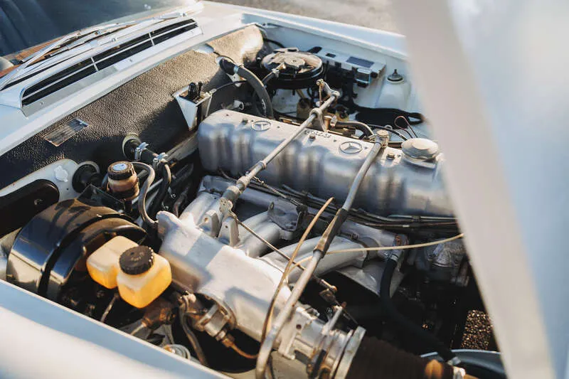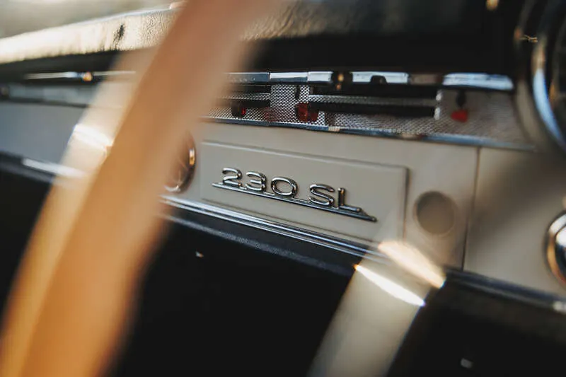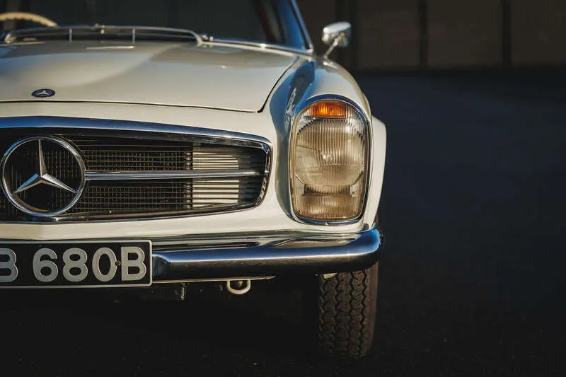 This lot will be auctioned via Iconic Auctioneers, The Iconic Sale at Race Retro 2026 - Collectors Cars on Saturday the 21st of February, Stoneleigh Park, Stoneleigh Rd, Coventry, CV8 2LG. Launched at the Geneva Motor Show in March 1963, the Mercedes-Benz 230SL, internally coded W113, marked a new chapter in the Stuttgart marque’s sporting lineage. Replacing the 190SL, the 230SL introduced a level of sophistication and design purity that would come to define the SL name for decades. Styled under the direction of Paul Bracq, its more angular lines were both elegant and purposeful, crowned by the distinctive concave hardtop roof that inspired the ‘Pagoda’ nickname. Beneath the bodywork lay Mercedes-Benz’s new M127, 2.3-litre straight-six engine with Bosch mechanical fuel injection, all-round independent suspension, and front disc brakes, creating a car that balanced performance, refinement, and reliability in a way few could match at the time. This example was first registered on 15th May 1964 to Lady Katie Fraser of Allander, wife of Sir Hugh Fraser. It spent much of its early life garaged and has benefited from long-term family ownership from 1996, followed by current ownership since 2018. During this period, the car has seen relatively little use and has spent extended spells in storage, so some recommissioning may be required prior to regular use. Finished in SL White (050) with a contrasting dark blue removable hardtop, the colour scheme is complemented by navy blue leather seats and mid-blue carpets, all replaced in 1997, and the car is further enhanced by the desirable optional side-facing third seat. A stainless steel exhaust has been fitted and the car is booked in for a service prior to sale. It's supplied with period documentation, a selection of invoices, MOT Certificates dating back to 1981, its original buff log book, spare wheel, and Mercedes-Benz jack. An original UK-delivered, right-hand drive 230SL with manual transmission, offering an appealing balance of usability, provenance and classic 'Pagoda' charm.