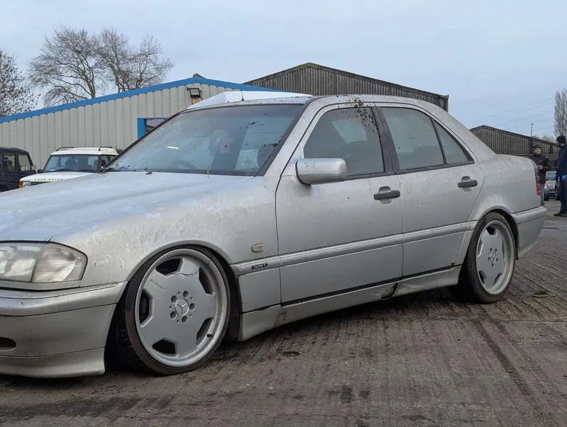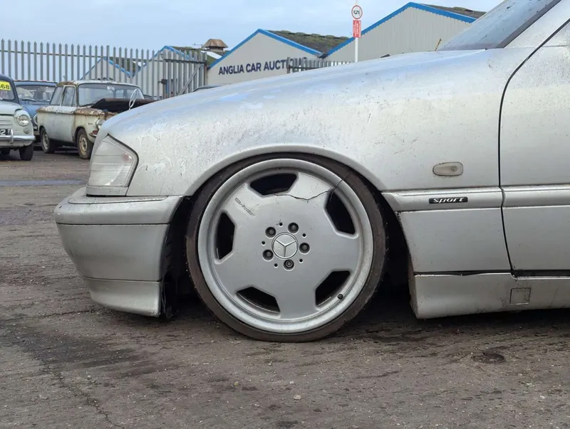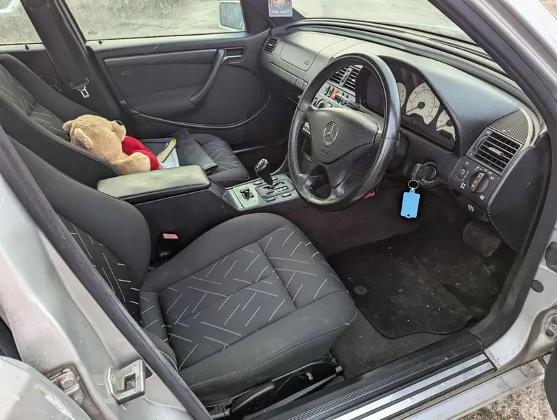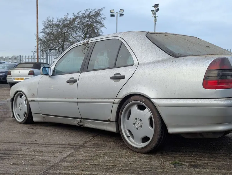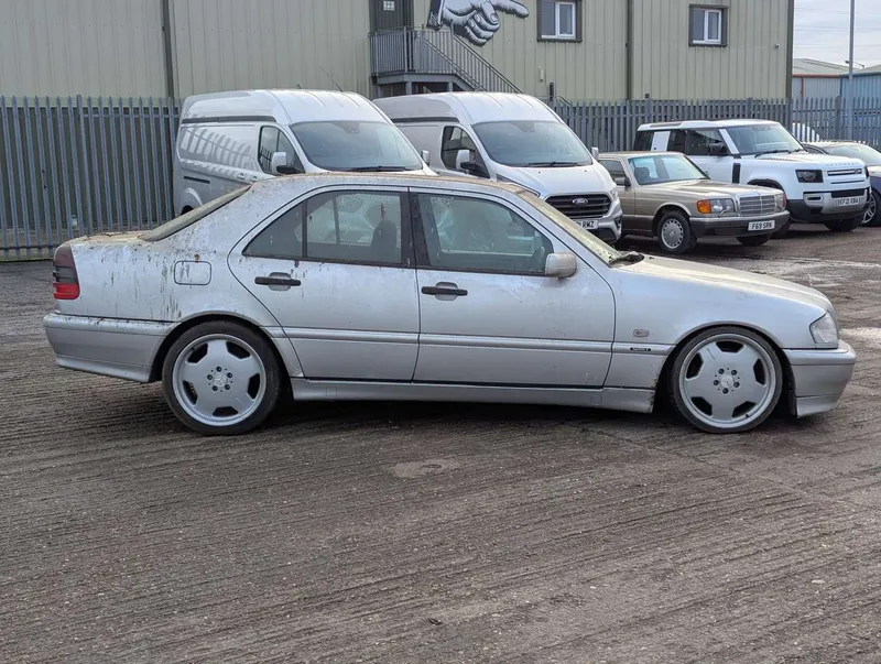 This silver Mercedes C-class Sport has been dry-stored as part of a collection for the last 7 years. Its MoT expired in 2018, so it is being sold as a non-running project, requiring re-commissioning. Despite the C400 and AMG badging on the tailgate, and AMG alloy wheels, this is believed to be a 2.0-litre C200 model. It features lowered ride height and carbon-effect interior trim which distinguished the Sport package for the W202.The car comes with the owner's handbook pack and a service book which contains 7 stamps up to 103k miles in 2009. The current mileage is not known due to there being no current for the digital display, but the last MoT was passed in 2017 at 136,001 miles. The V5C is also present. The Mercedes was first registered on 1st September 1999. Not specified