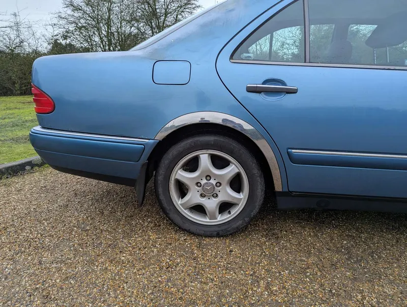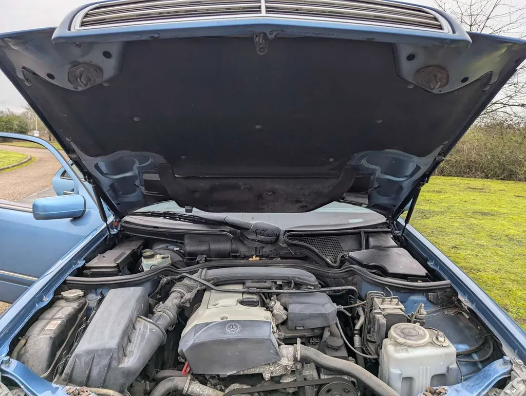 The Mercedes-Benz E200 (W210) Elegance has an MoT to 15th March 2026, with 84,833 miles showing on the odometer. Contrary to what is stated on the boot, this is 2.0-litre petrol model, with five-speed automatic transmission, finished in the rare shade of Aquamarine Blue. The blue fabric interior is equipped with cruise control, electric mirrors and windows. The vendor believes there are fewer than 100 examples with this specification left on the road. The car was first registered on 2nd September 1997 to a buyer in Lancashire, and the current V5C indicates 3 former keepers. It has been MoT tested most years of its life, as can be seen from the large history file of invoices and MoT certificates. These are accompanied by an original Mercedes brochure, and the handbook pack which contains service booklets with 12 stamps (including PDI) up to 74,463 miles in 2017.The vendor advises that one of the front wings has been replaced and professionally resprayed, and the off-side rear has received some paintwork that will need redoing. Two spare keys are present. Not specified