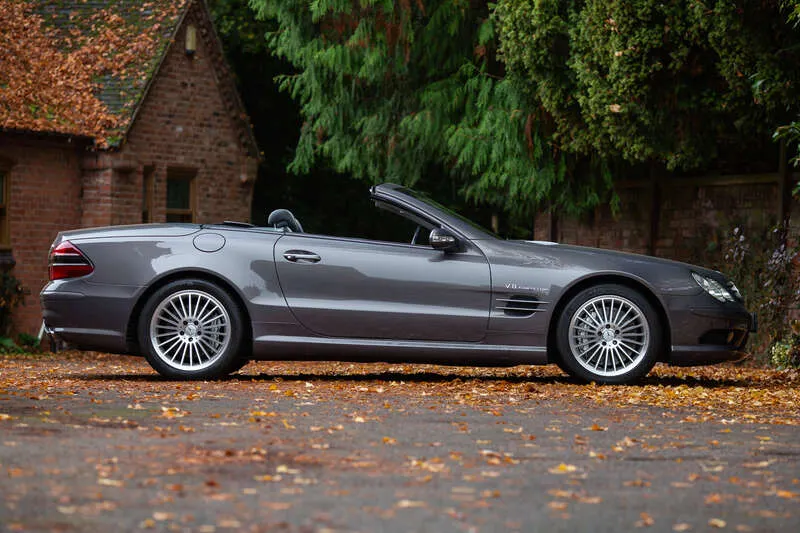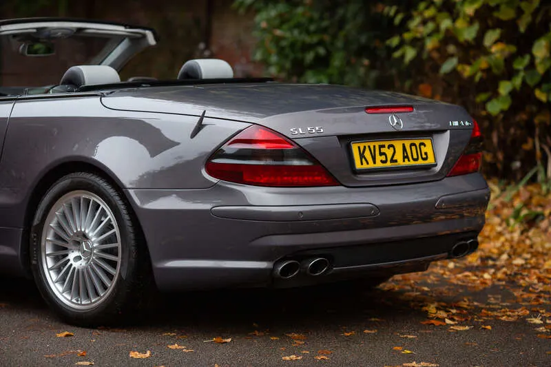 This lot will be auctioned via Iconic Auctioneers, The Classic Sale at the NEC Classic Motor Show 2025 on Sunday the 9th of November, NEC, Birmingham, B40 1NT. Introduced in 2002, the SL55 AMG was the flagship of the R230 range and one of the most powerful Mercedes-Benz models of its time, blending luxury with formidable performance This example presents in Designo Grey with a matching interior, glass panoramic roof, AMG alloy wheels recently refurbished, and a clean, well cared for overall appearance Powered by AMG’s hand-built 5.4-litre supercharged V8 producing around 493bhp and 700Nm of torque, driving through a 5-speed automatic transmission with semi-manual shift capability Factory options include Keyless Go and the panoramic roof, while both the ABC suspension system and retractable hardtop operate exactly as intended Showing 55,330 miles with a full service history and evidence of annual specialist servicing, always garaged and kept on a trickle charger under current ownership Supplied with two keys and records of maintenance, the only noted imperfection being a small tear in the mesh of the rear wind deflector A fine example of AMG's early 2000s engineering, ready for immediate enjoyment and potentially a sound investment in a few years