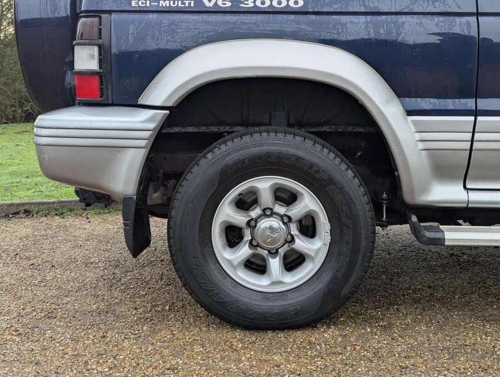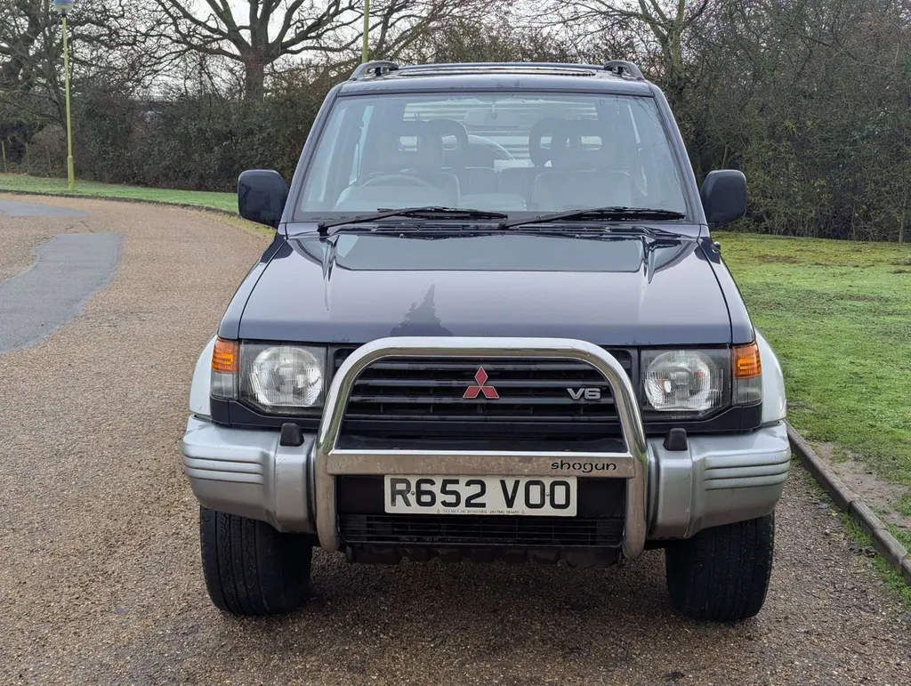 This black Mitsubishi Shogun GLS was bought from our January sale last year and has covered only 300 miles since then. The odometer shows 67,190 miles, and the car has an MoT which lasts to 30th October 2026. In the vendor's words, it "runs very well, and everything works as it should." In recent months it has received new rear discs and pads and one caliper for its MoT, plus a new windscreen. This is a short wheelbase GLS model with a V6 petrol engine and automatic transmission, with low-range gearbox and locking differential. Its interior features grey/blue leather seats, electric windows, and an inclinometer, with an aftermarket pop-up infotainment system. It comes with two sets of keys, a large stack of maintenance receipts, and the latest V5C. Also present is the owner's handbook pack, including a pair of service booklets which contains 5 stamps, including the PDI. The latest indicates a timing belt replacement at 35,063 miles.The car was first registered on 23rd August 1997. Not specified