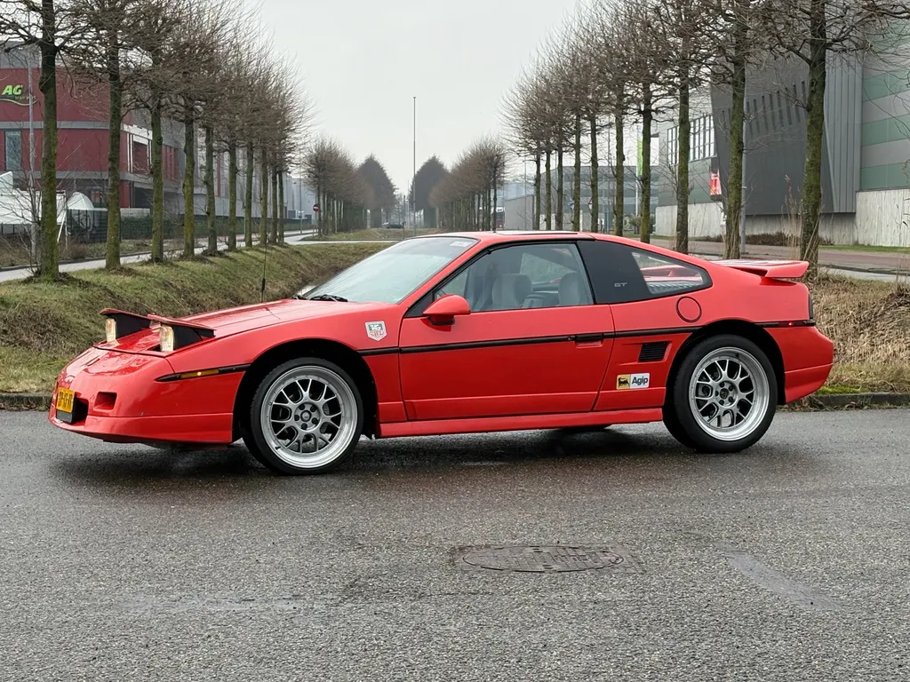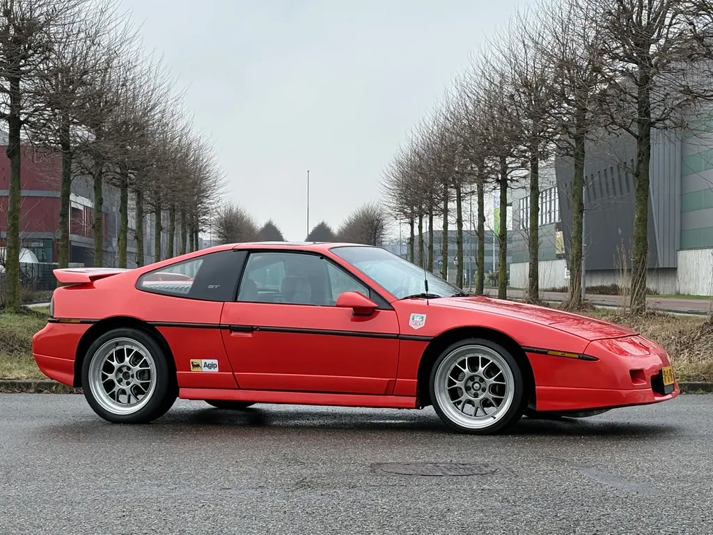 Pontiac Fiero GT V6, year 1987. Red with a gray cloth interior. A pure American sports car with character. Are you looking for a unique classic with a true '80s look? Then this 1987 Pontiac Fiero GT V6 is exactly what you're looking for! This Fiero is equipped with a powerful 2.8L V6 engine producing 140 hp, an automatic transmission, and rear-wheel drive, making for a surprisingly sporty driving experience. The automatic transmission has 4 gears. With a low milage of only 134,000 km. The engine was completely rebuilt two years ago with new bearings and seals. In this 1987 GT version, the Fiero features sporty bumpers, spoilers, and wide alloy wheels. It also has a removable dark glass sunroof. This Pontiac was delivered new in 1987 by Hessing, a well-known dealer of American and various highly exclusive brands. This Fiero (EU) has a speedometer in km/h. The car drives, shifts, and brakes well. The interior is still in very good and neat condition, especially considering its age. Sporty performance and the sound of a real V6 with a sports exhaust. Lightweight plastic body, Fastback model. A truly fun sports car, iconic in America and rare in Europe. Whatsapp direct : 0031 683240411 Wilco Beijer We speak Dutch, English , German and French. Our cars can be delivered with Dutch, German or Belgium registration. We can assist with the French registration. Transport to your door is possible. We have our own workshop facility with 30 years experience with classic cars.