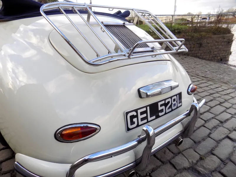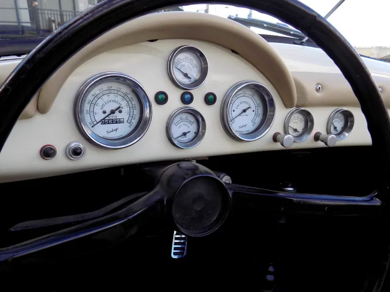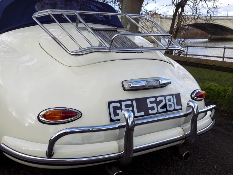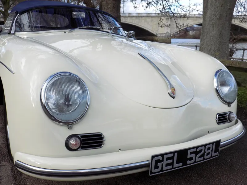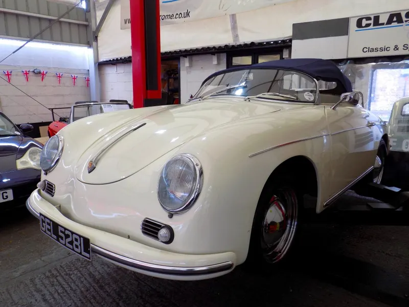 FABULOUS PORSCHE 356 SPEEDSTER REPLICA - LHD This beautiful Speedster, was built by Classic Motor Carriages operating out of Miami, Florida, USA and CMC were a significant manufacturer of Speedster replicas in the 1990's. This example was was built using a 1973 VW Beetle donor car and was first registered in Florida on 7th September 1994 upon completion. Unfortunately, little is known of its history in the USA before it was imported from Florida to the UK and first registered here on December 21st 2005. The current owner, a lady, purchased the car in 2017, but the history file has been lost during a recent house move, so she is trying to recover the file and trace its history as much as possible. It’s an exceptional replica, built to a high standard, and features a 1600cc VW engine paired with a 4-speed gearbox. The car has recently undergone some impressive updates, including a brand new blue mohair soft top and a tan leather interior, both professionally fitted by Strong & Turton Coach-trimmers at a cost of £3,750. Additionally, it has been fully serviced and recommissioned by the specialists at Terry’s Beetles in Boston Manor, London, for £3,291.79. Finished in a striking Ivory White, this Speedster not only looks stunning but drives beautifully and remains in excellent condition throughout. It is registered as an Historic Vehicle, making it exempt from both MOT and Road Tax, and is ULEZ compliant. Prior to delivery, the car will undergo a comprehensive 55-point pre-delivery inspection and receive a fresh MOT. It will also be provided with a 6-month Mechanical Parts & Labour Warranty, with options for extension or upgrade. Now available for viewing at our Mortlake, South West London showrooms. Disclaimer Classic Chrome Ltd makes every effort to ensure the information in this advertisement is accurate. Details regarding provenance and condition are based on the vehicle’s history file and previous ownership records, provided in good faith. Prospective purchasers are encouraged to satisfy themselves as to the vehicle’s condition and suitability prior to purchase. This disclaimer does not affect your statutory rights. 15'' Chrome Wheels, 4 Speed Manual Gearbox, ULEZ COMPLIANT, Road Tax & MOT Exempt, Immobiliser, LHD, Rear Wheel Drive, Hydraulic brakes, Front Disc Brakes, Leather Trim, Blue Mohair Soft Top, Rear Drum Brakes, Tachometer, Folding Roof, Luggage Rack, Full Weather Equipment, Historic Vehicle