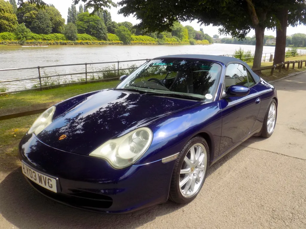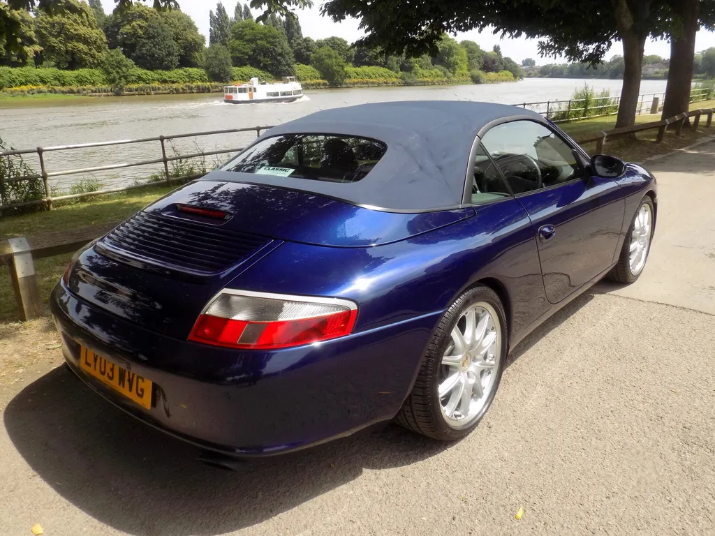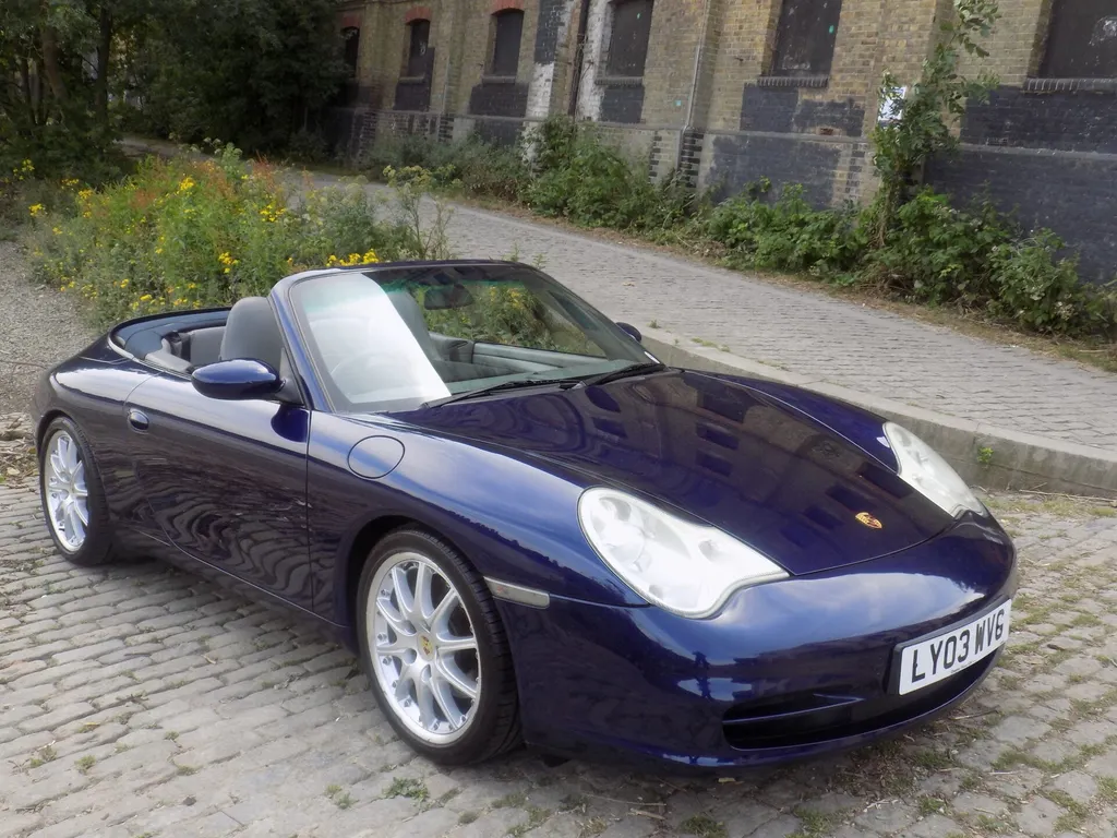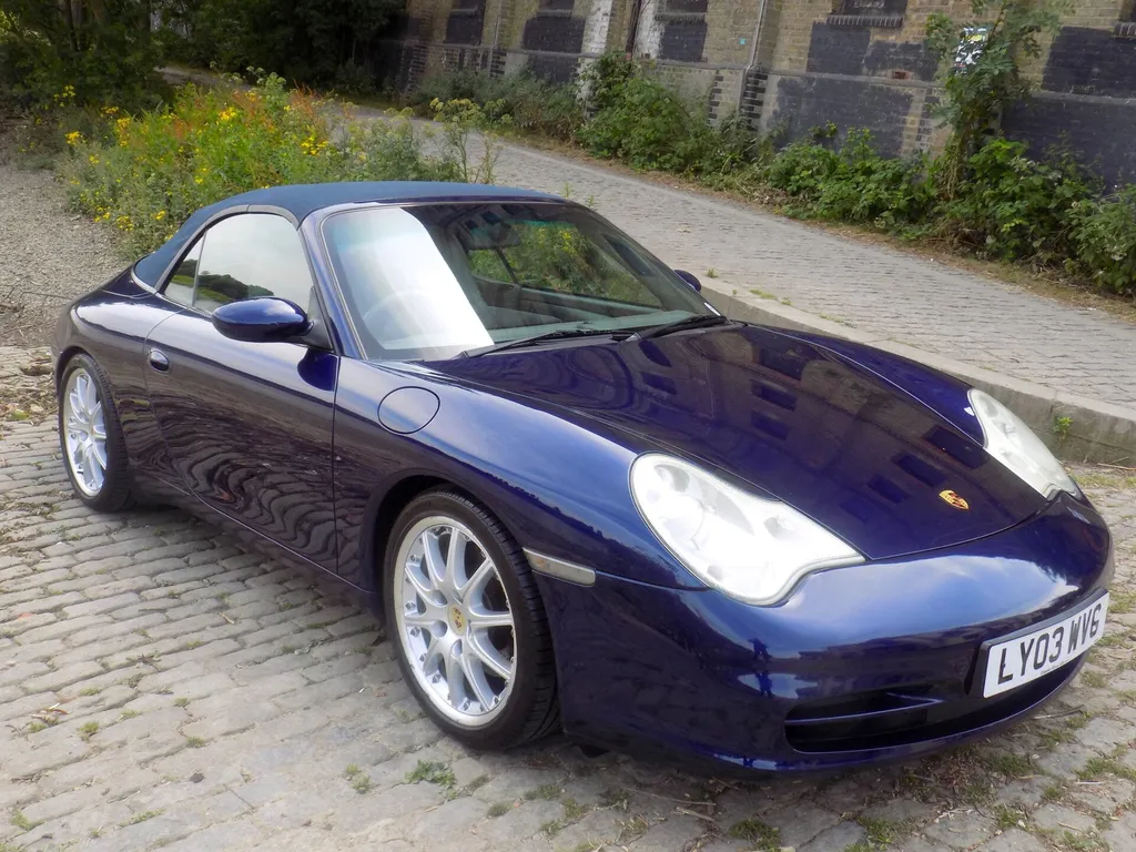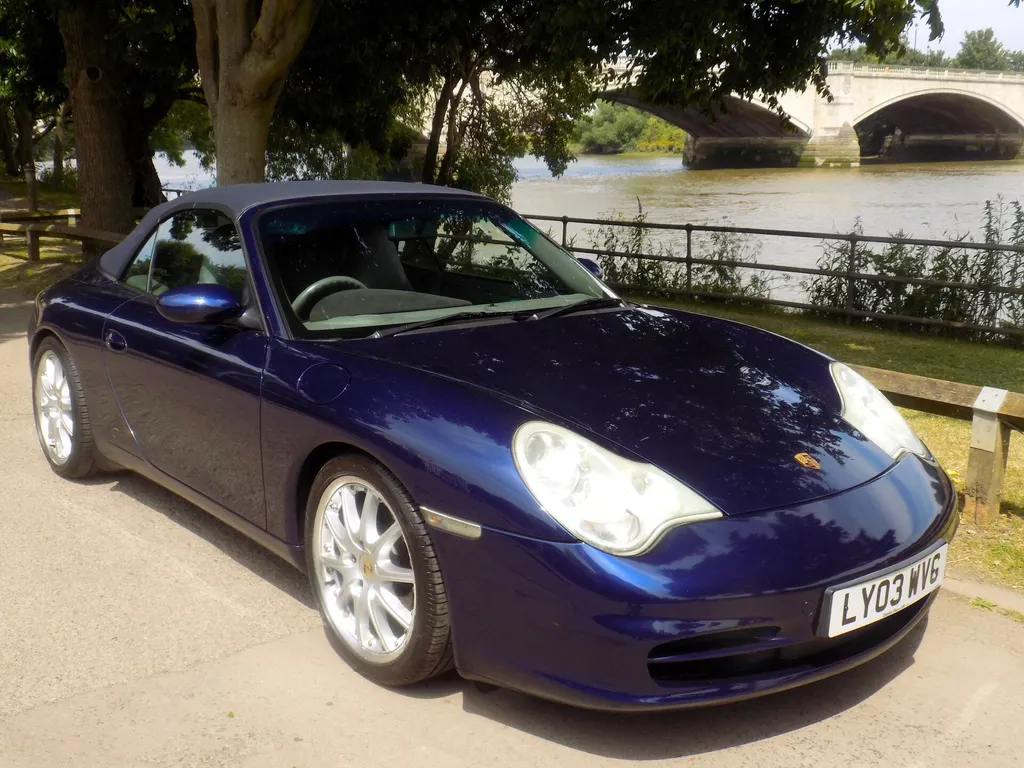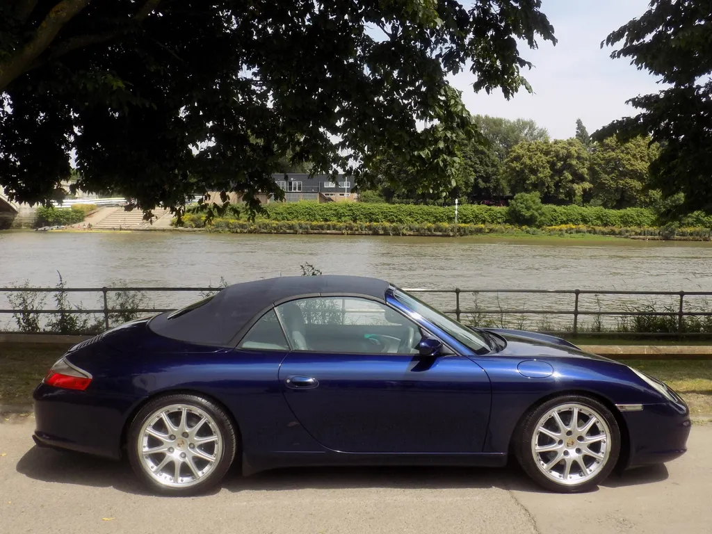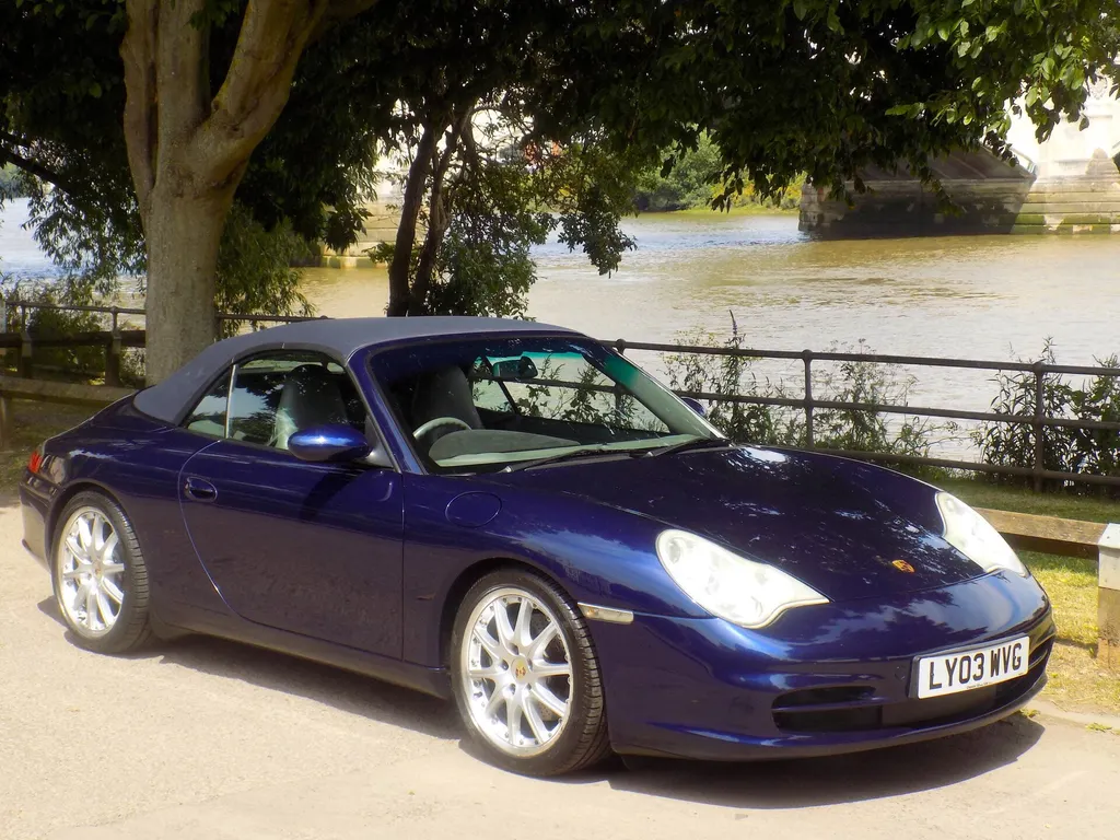 2003 Porsche 911 (996) Carrera 2 Convertible – 6-Speed Manual Only 40,000 Miles Air Conditioning, Electric Seats, Electric Windows, RUF Lowering Kit 10mm, Electronic Stability Programme, Electronic Traction Control, ABS Bakes, Front Disc Brakes, Traction Control, Factory fitted Alarm, Immobiliser, Central locking, 6 Speed Manual Gearbox, Porsche Stability Management (PSM), Power Assisted Brakes, Rear Disc Brakes, Drivers Air Bag, Leather Sports Seats, Electric Folding Soft Top, Electric Mirrors, Blue Mohair Soft Top, Bose Sound System, Apple Car Play, ULEZ COMPLIANT, Original Porsche Tool Kit, Satellite navigation system with Bluetooth® connectivity, Wind Deflector, 6 Disc CD Changer, Pioneer DAB Stereo/CD Player, DAB Radio, Rear Parking Sensors, Top Tinted Windscreen, Aluminium gear stick, Leather Trim, Multiple Air Bags, Passengers Air Bag, RUF Lowered Suspension, Fuel Injection, Power Assisted Steering, Rear Wheel Drive, 18'' Carrera Wheels