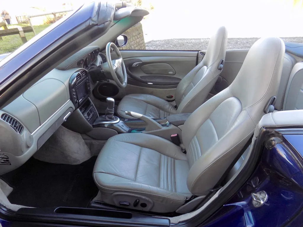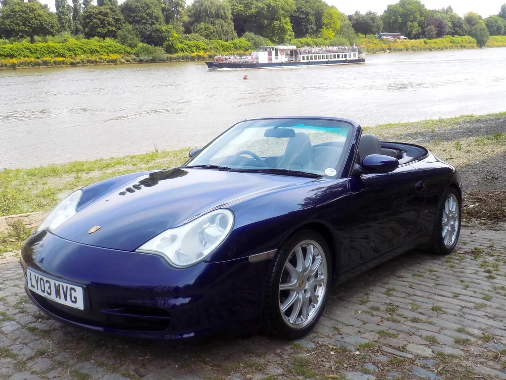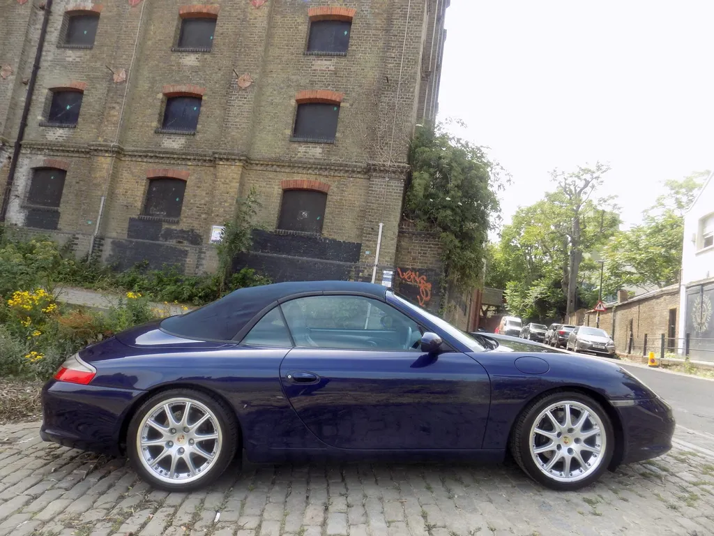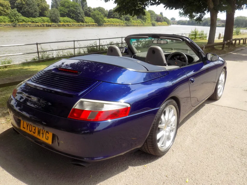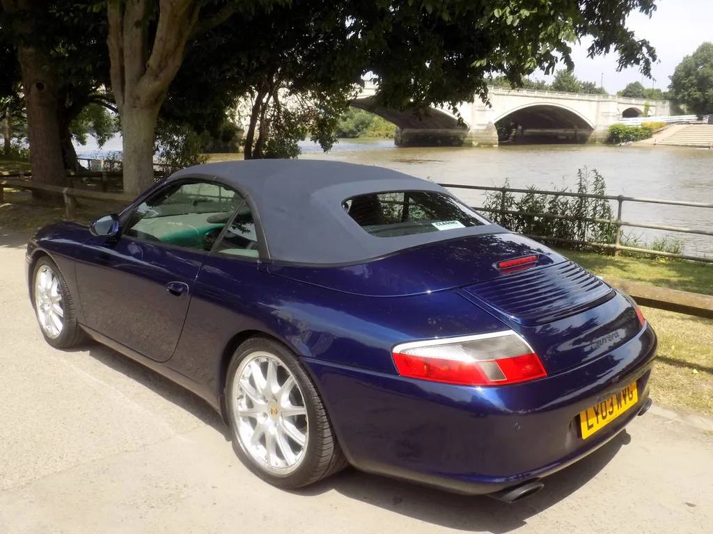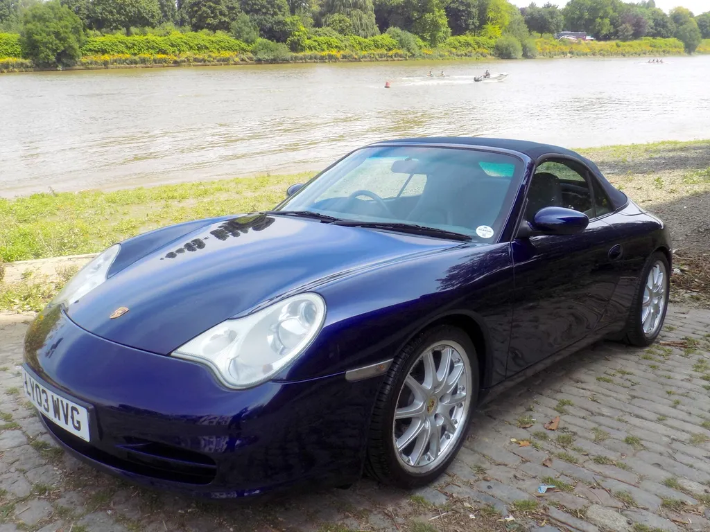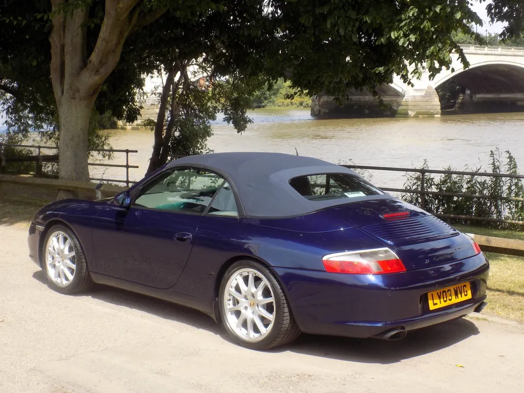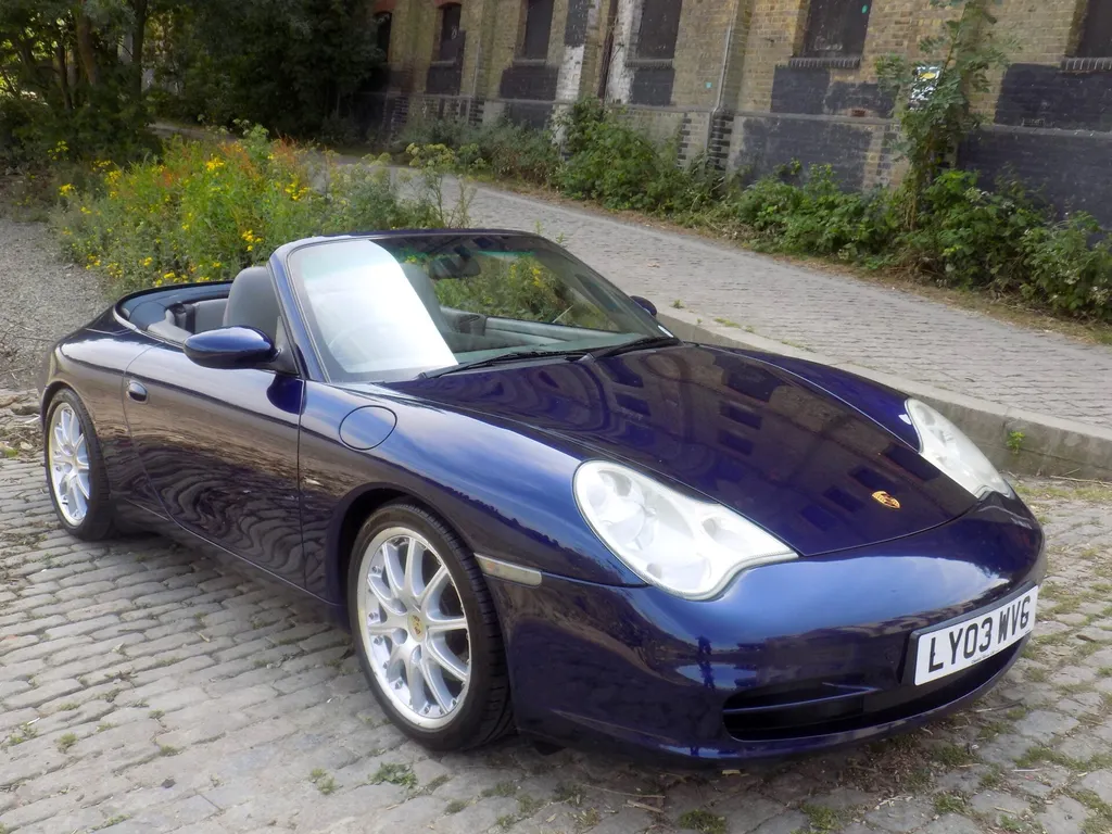 2003 Porsche 911 (996) Carrera 2 Convertible – 6-Speed Manual Only 40,000 Miles Air Conditioning, Electric Seats, Electric Windows, RUF Lowering Kit 10mm, Electronic Stability Programme, Electronic Traction Control, ABS Bakes, Front Disc Brakes, Traction Control, Factory fitted Alarm, Immobiliser, Central locking, 6 Speed Manual Gearbox, Porsche Stability Management (PSM), Power Assisted Brakes, Rear Disc Brakes, Drivers Air Bag, Leather Sports Seats, Electric Folding Soft Top, Electric Mirrors, Blue Mohair Soft Top, Bose Sound System, Apple Car Play, ULEZ COMPLIANT, Original Porsche Tool Kit, Satellite navigation system with Bluetooth® connectivity, Wind Deflector, 6 Disc CD Changer, Pioneer DAB Stereo/CD Player, DAB Radio, Rear Parking Sensors, Top Tinted Windscreen, Aluminium gear stick, Leather Trim, Multiple Air Bags, Passengers Air Bag, RUF Lowered Suspension, Fuel Injection, Power Assisted Steering, Rear Wheel Drive, 18'' Carrera Wheels