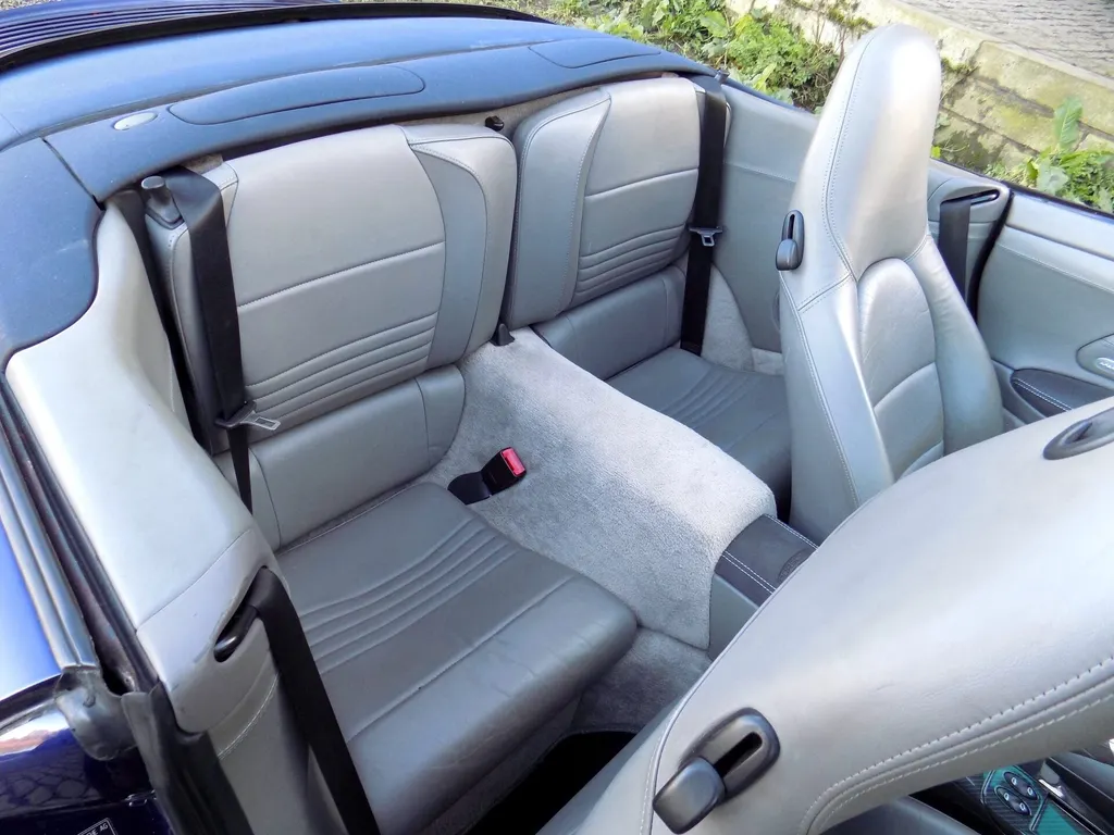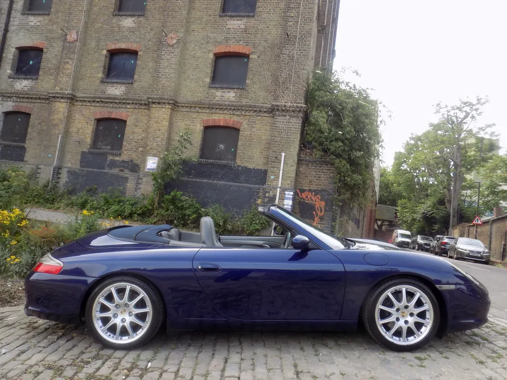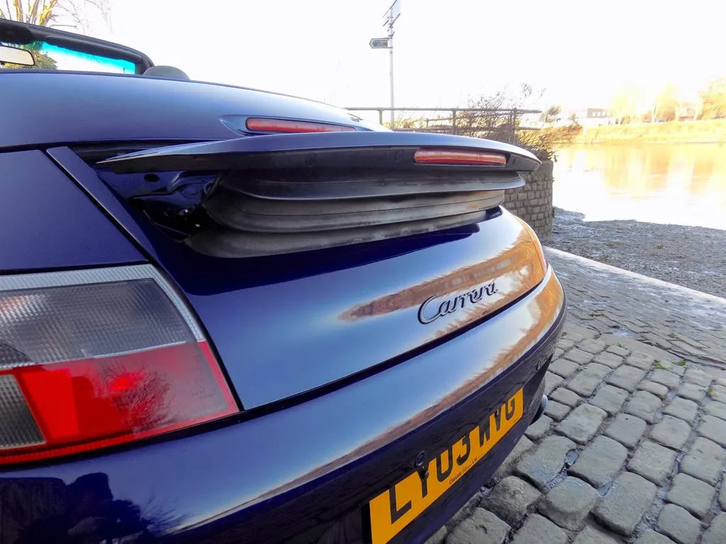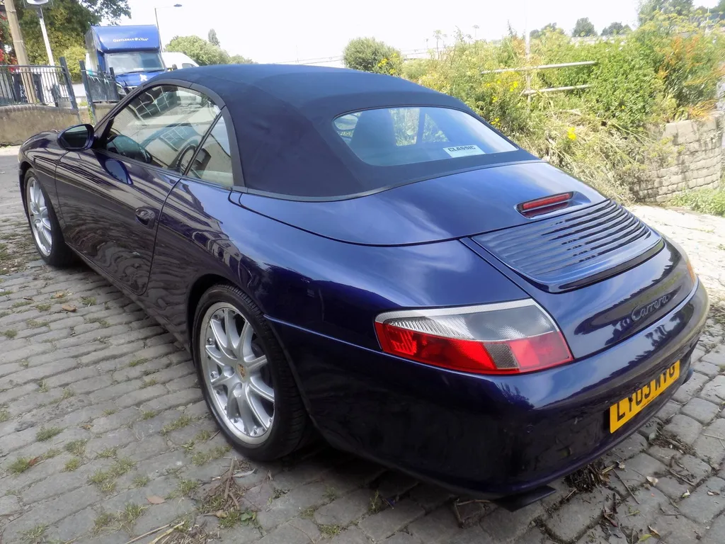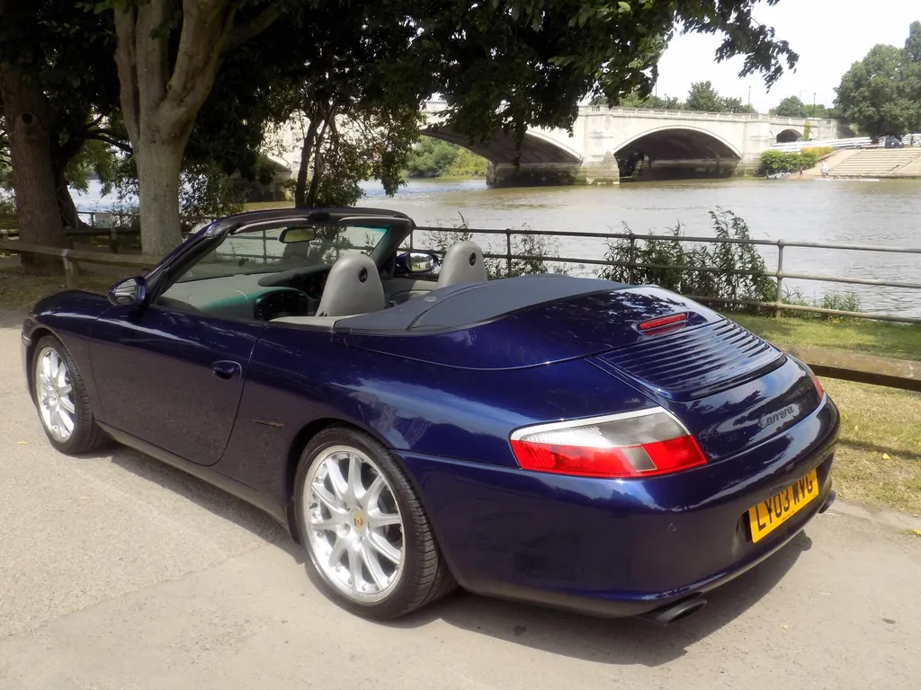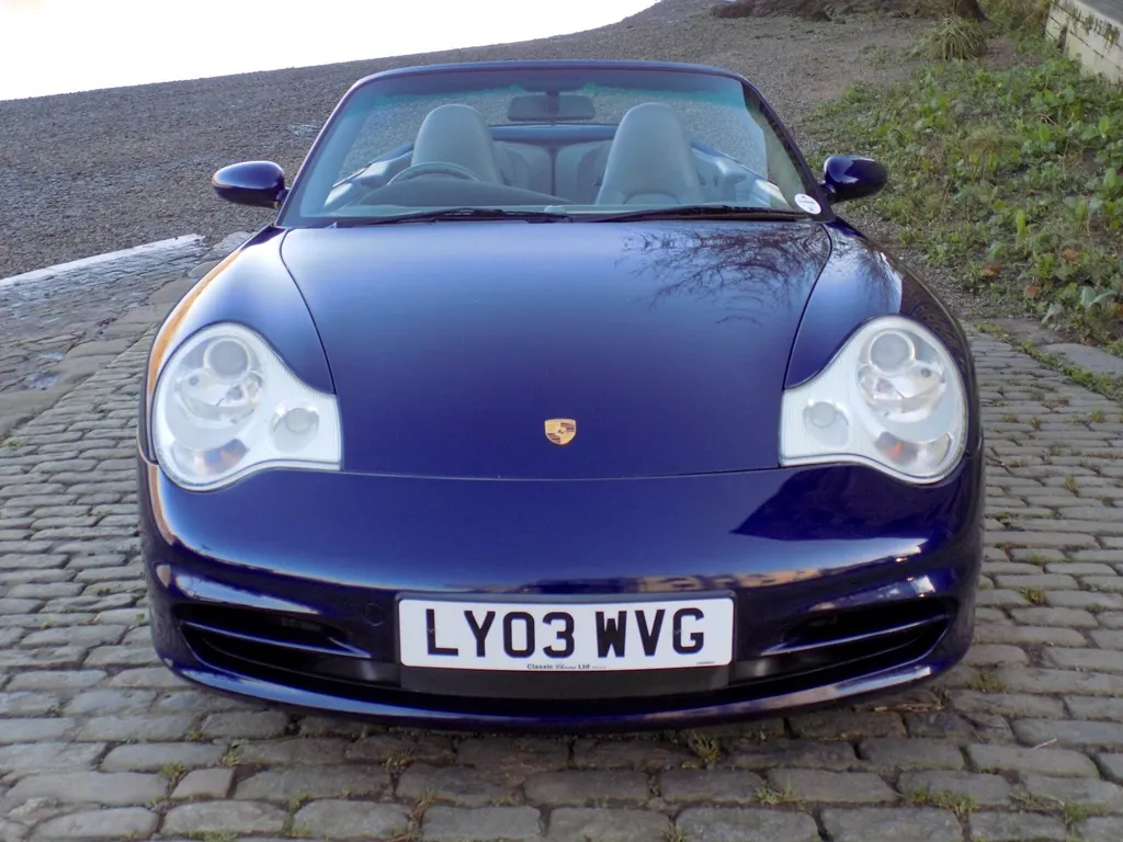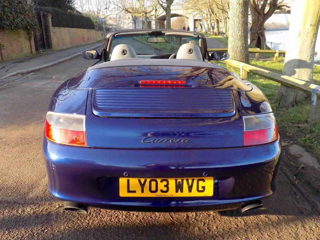 2003 Porsche 911 (996) Carrera 2 Convertible – 6-Speed Manual Only 40,000 Miles Air Conditioning, Electric Seats, Electric Windows, RUF Lowering Kit 10mm, Electronic Stability Programme, Electronic Traction Control, ABS Bakes, Front Disc Brakes, Traction Control, Factory fitted Alarm, Immobiliser, Central locking, 6 Speed Manual Gearbox, Porsche Stability Management (PSM), Power Assisted Brakes, Rear Disc Brakes, Drivers Air Bag, Leather Sports Seats, Electric Folding Soft Top, Electric Mirrors, Blue Mohair Soft Top, Bose Sound System, Apple Car Play, ULEZ COMPLIANT, Original Porsche Tool Kit, Satellite navigation system with Bluetooth® connectivity, Wind Deflector, 6 Disc CD Changer, Pioneer DAB Stereo/CD Player, DAB Radio, Rear Parking Sensors, Top Tinted Windscreen, Aluminium gear stick, Leather Trim, Multiple Air Bags, Passengers Air Bag, RUF Lowered Suspension, Fuel Injection, Power Assisted Steering, Rear Wheel Drive, 18'' Carrera Wheels