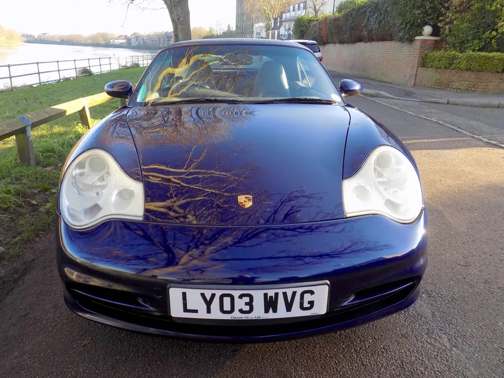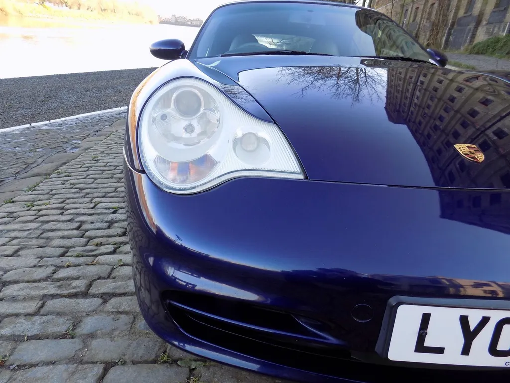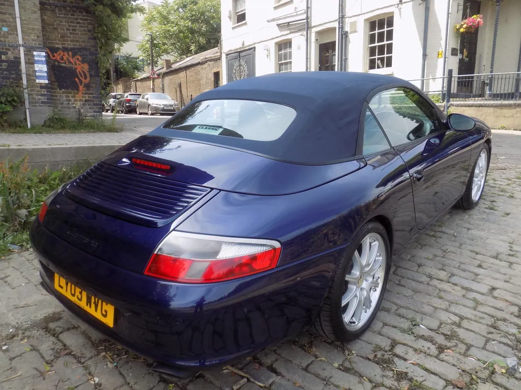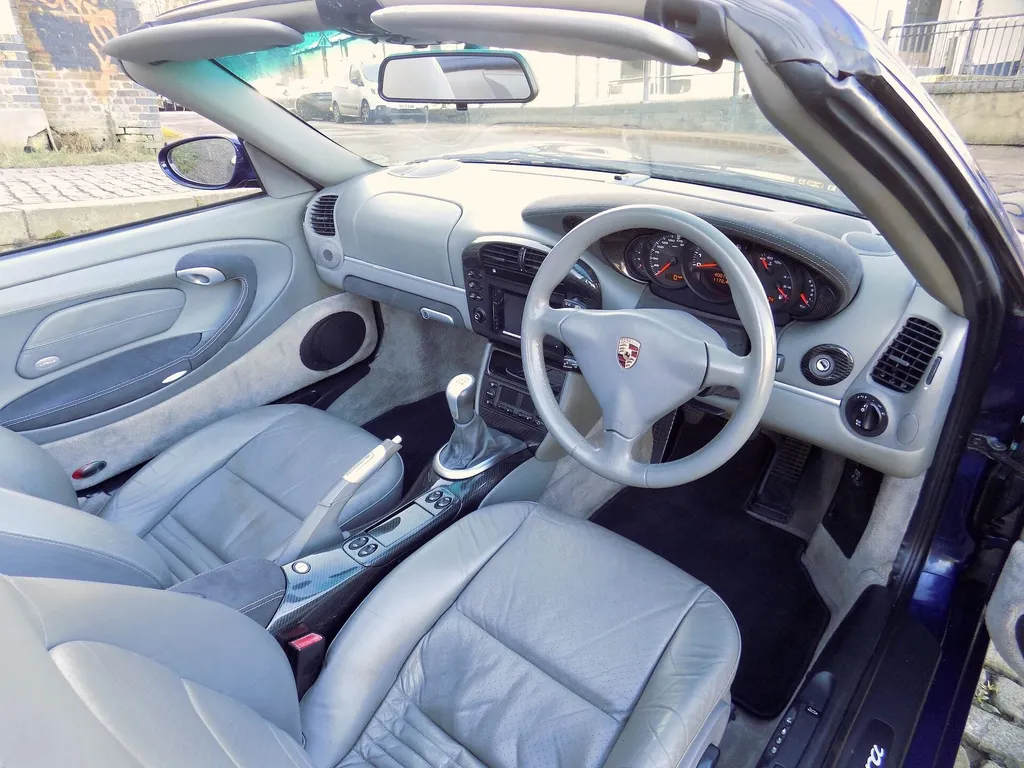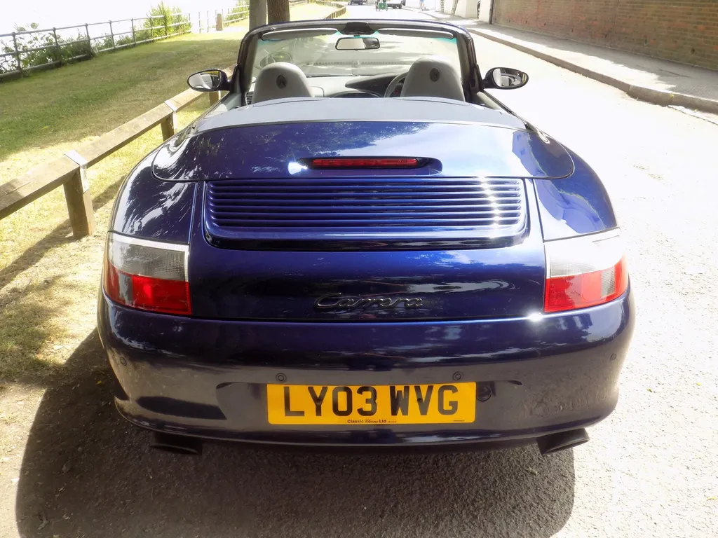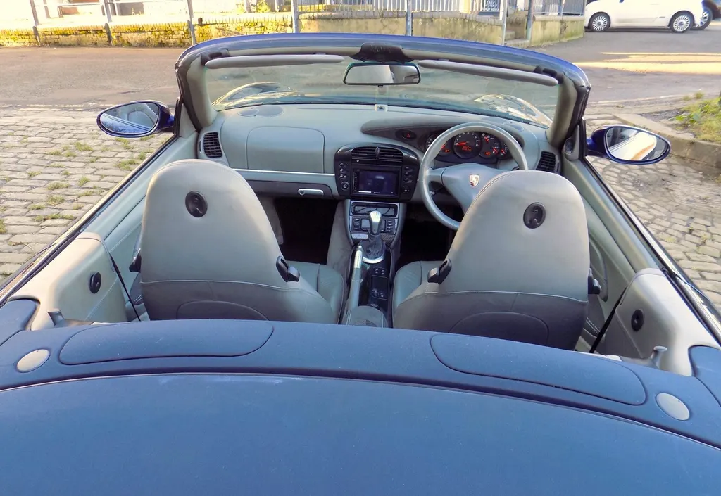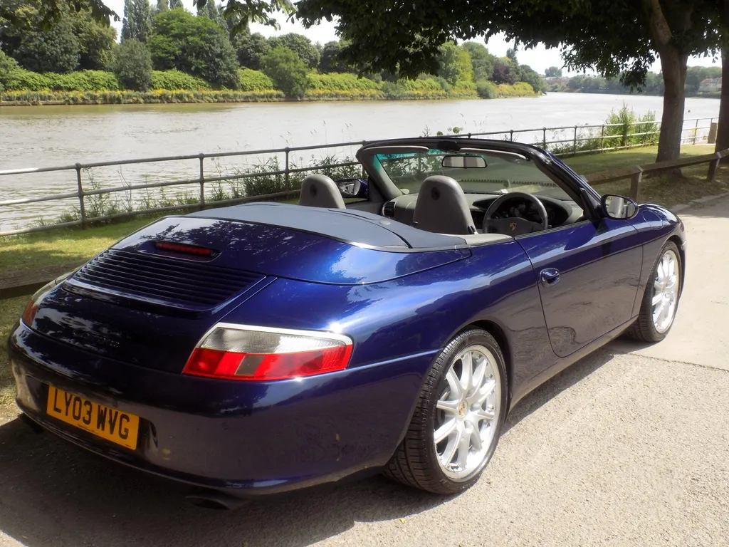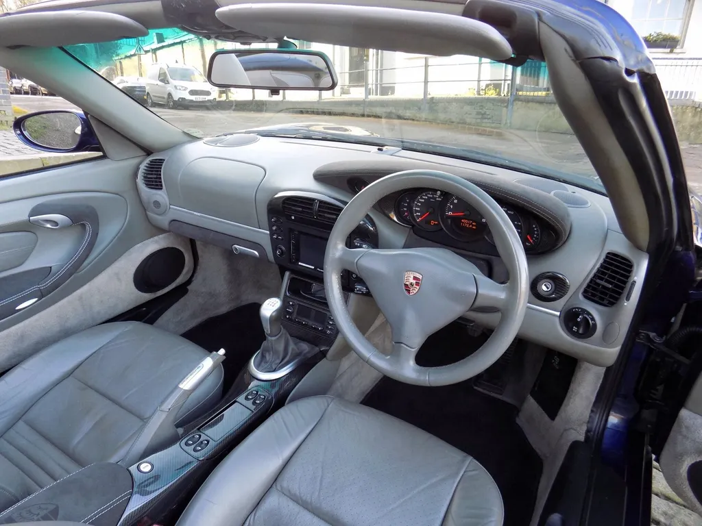 2003 Porsche 911 (996) Carrera 2 Convertible – 6-Speed Manual Only 40,000 Miles Air Conditioning, Electric Seats, Electric Windows, RUF Lowering Kit 10mm, Electronic Stability Programme, Electronic Traction Control, ABS Bakes, Front Disc Brakes, Traction Control, Factory fitted Alarm, Immobiliser, Central locking, 6 Speed Manual Gearbox, Porsche Stability Management (PSM), Power Assisted Brakes, Rear Disc Brakes, Drivers Air Bag, Leather Sports Seats, Electric Folding Soft Top, Electric Mirrors, Blue Mohair Soft Top, Bose Sound System, Apple Car Play, ULEZ COMPLIANT, Original Porsche Tool Kit, Satellite navigation system with Bluetooth® connectivity, Wind Deflector, 6 Disc CD Changer, Pioneer DAB Stereo/CD Player, DAB Radio, Rear Parking Sensors, Top Tinted Windscreen, Aluminium gear stick, Leather Trim, Multiple Air Bags, Passengers Air Bag, RUF Lowered Suspension, Fuel Injection, Power Assisted Steering, Rear Wheel Drive, 18'' Carrera Wheels