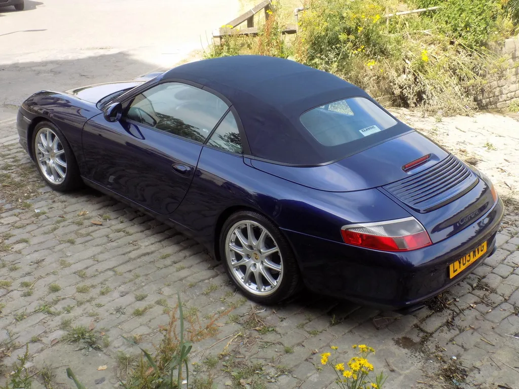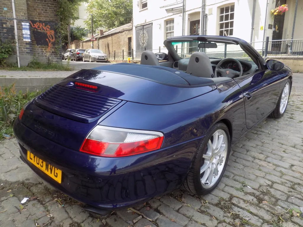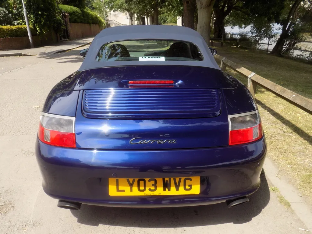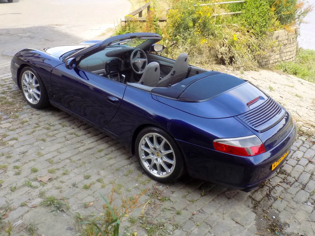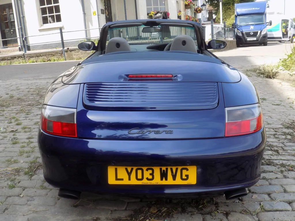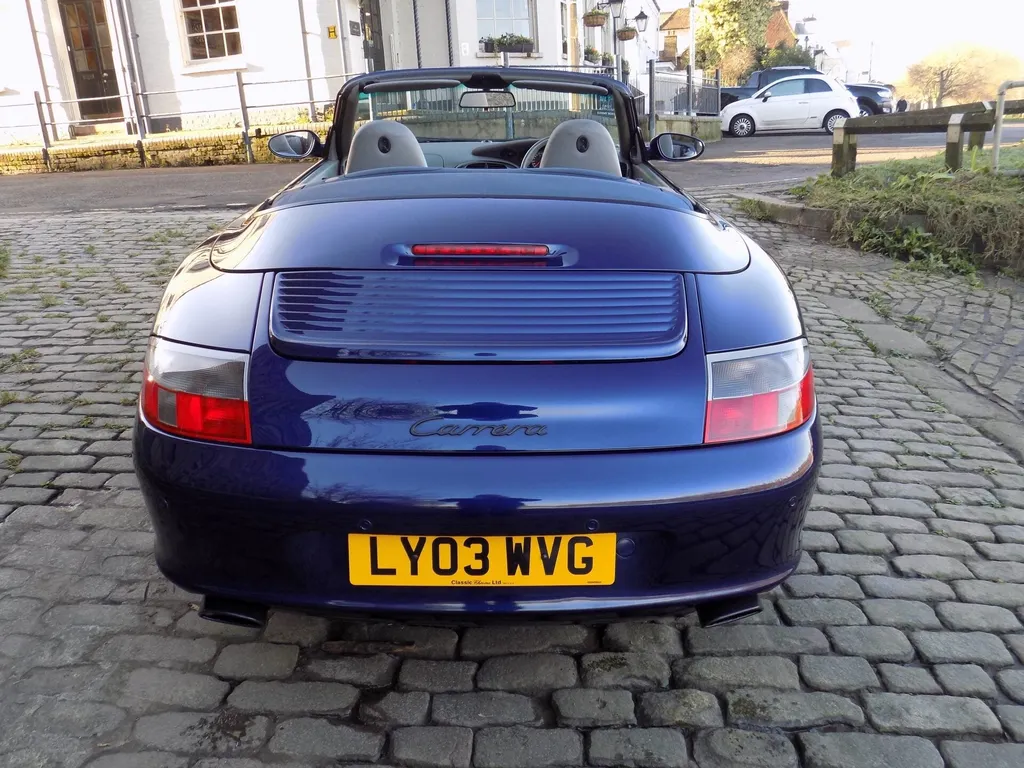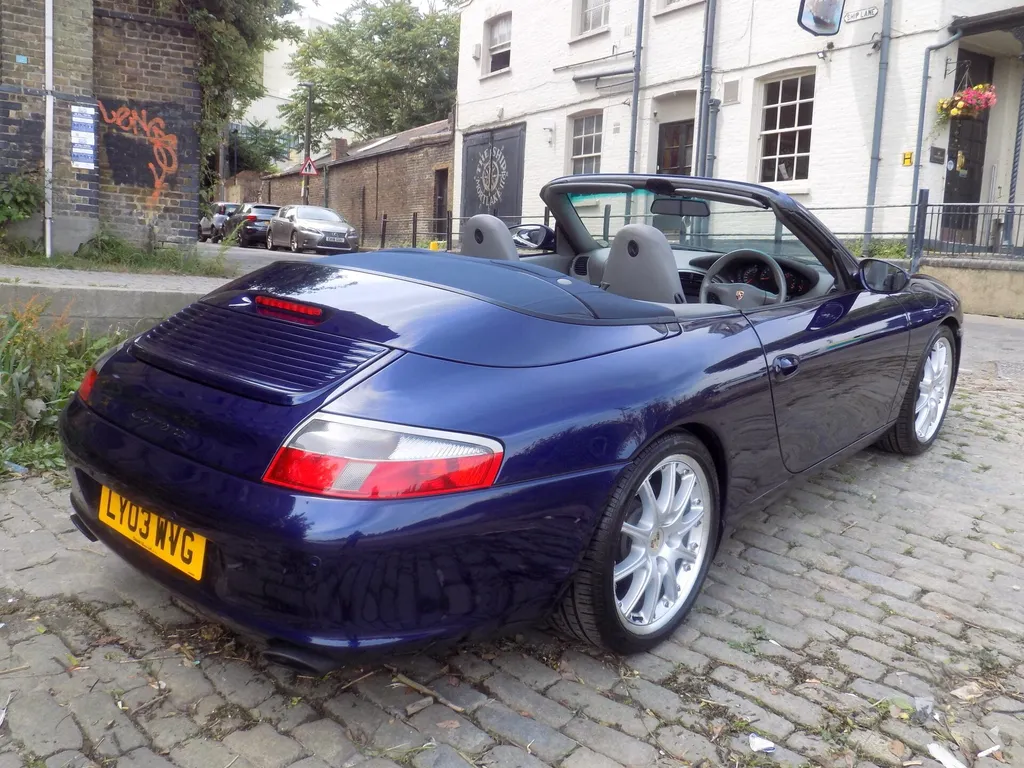 2003 Porsche 911 (996) Carrera 2 Convertible – 6-Speed Manual Only 40,000 Miles Air Conditioning, Electric Seats, Electric Windows, RUF Lowering Kit 10mm, Electronic Stability Programme, Electronic Traction Control, ABS Bakes, Front Disc Brakes, Traction Control, Factory fitted Alarm, Immobiliser, Central locking, 6 Speed Manual Gearbox, Porsche Stability Management (PSM), Power Assisted Brakes, Rear Disc Brakes, Drivers Air Bag, Leather Sports Seats, Electric Folding Soft Top, Electric Mirrors, Blue Mohair Soft Top, Bose Sound System, Apple Car Play, ULEZ COMPLIANT, Original Porsche Tool Kit, Satellite navigation system with Bluetooth® connectivity, Wind Deflector, 6 Disc CD Changer, Pioneer DAB Stereo/CD Player, DAB Radio, Rear Parking Sensors, Top Tinted Windscreen, Aluminium gear stick, Leather Trim, Multiple Air Bags, Passengers Air Bag, RUF Lowered Suspension, Fuel Injection, Power Assisted Steering, Rear Wheel Drive, 18'' Carrera Wheels