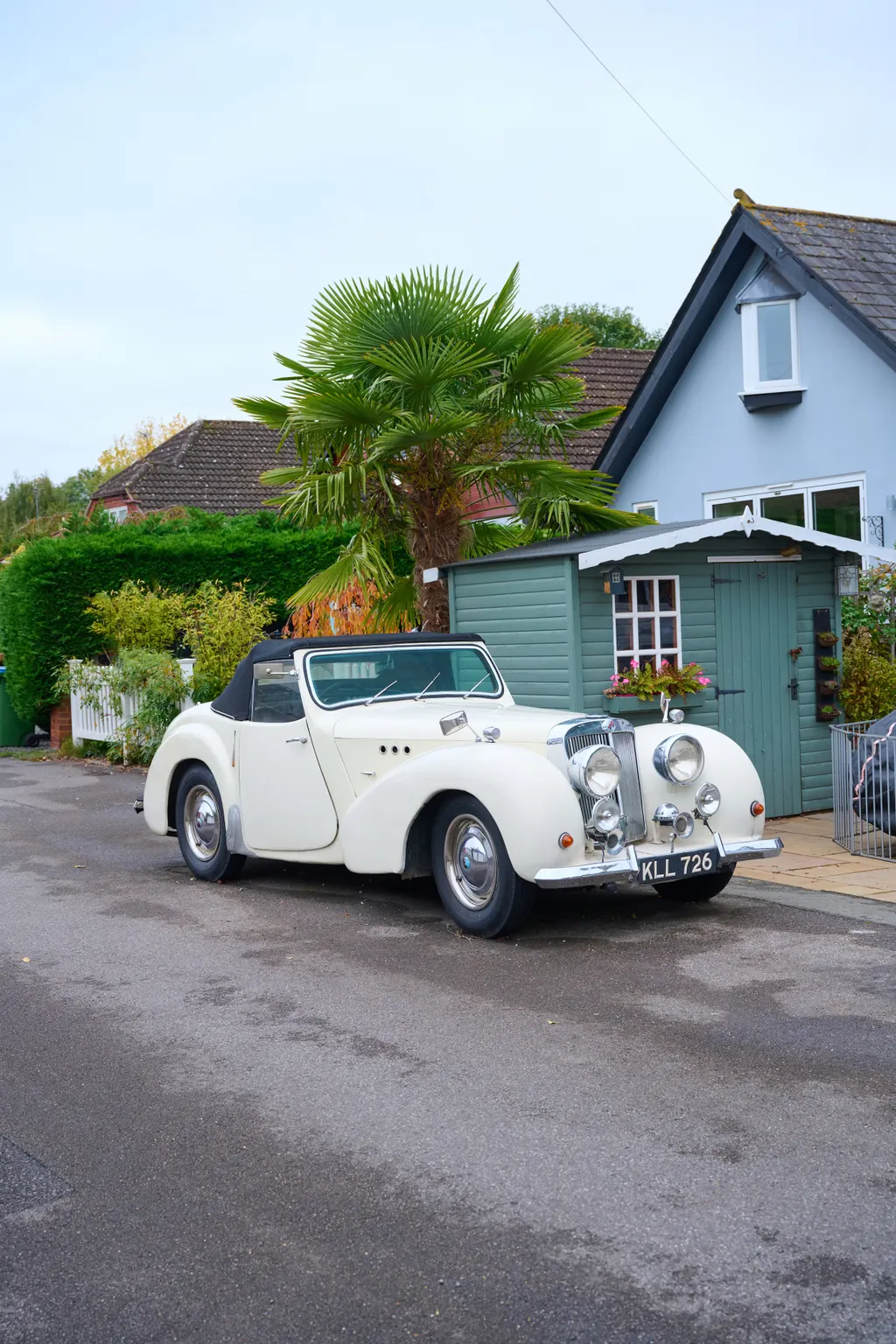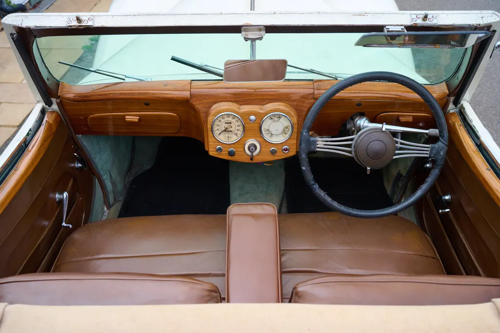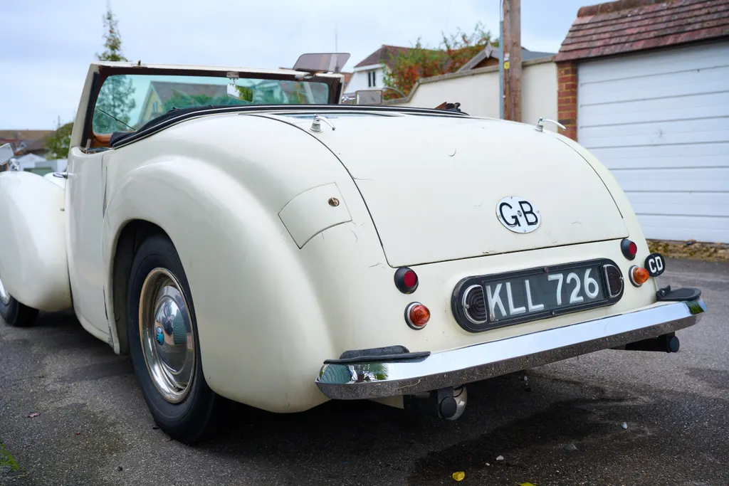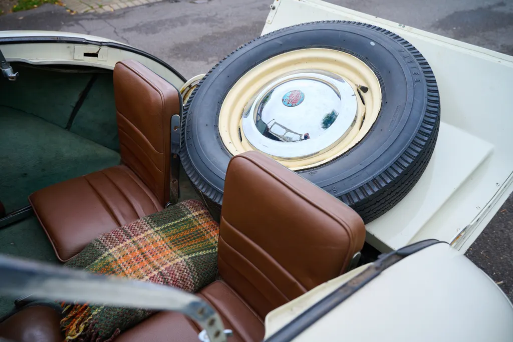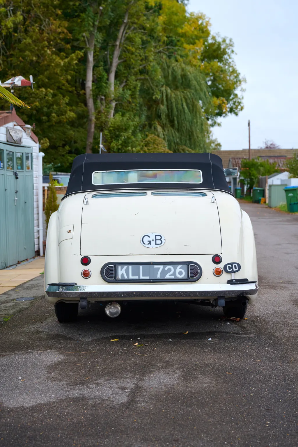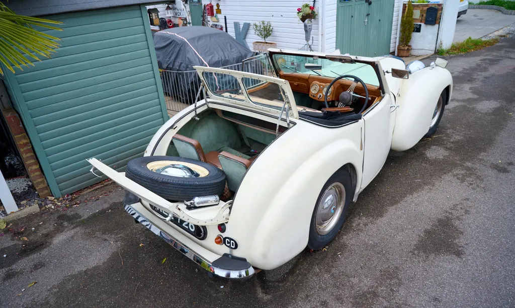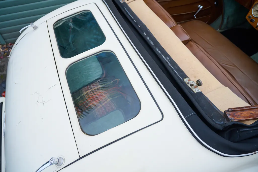 This example is presented in white with a brown interior and has a new black mohair hood. This has been the cherished vehicle of the present owner's late husband who used it as his daily driver up until March/April this year. Although the engine has not run since this time, it does turn over but will need some light recommissioning prior to driving it on the road and therefore we recommend it to be transported away from the auction. These British sports cars are very versatile having the use of the 'dicky' seat to the rear offering seating for two more passengers. The car resided in Belgium for a period of time and was imported back to the UK in 2002 when it was registered with the DVLA. It would appear, owing to a small metal badge mounted to the rear stating CD, that it was owned once upon a time by an individual in the Diplomatic Corp but there is no paperwork to substantiate this. The car has had its new mohair hood fitted recently, and the dashboard and door cappings are in good condition, as well as the seats. It comes with a history file containing various receipts in Belgian and English showing works done in the past. Consigned by James Good