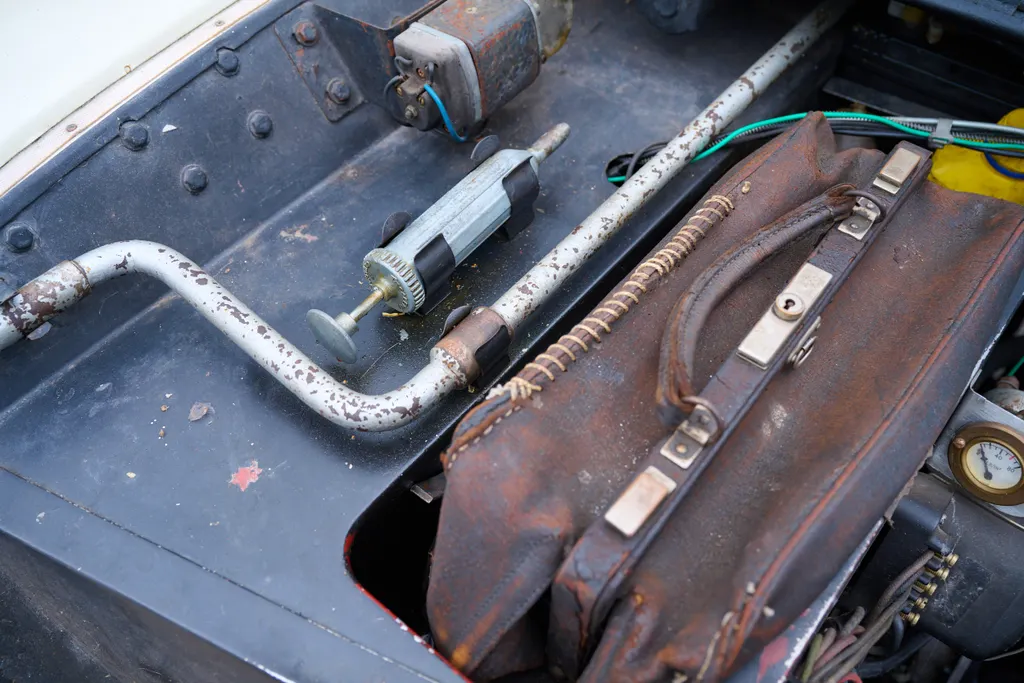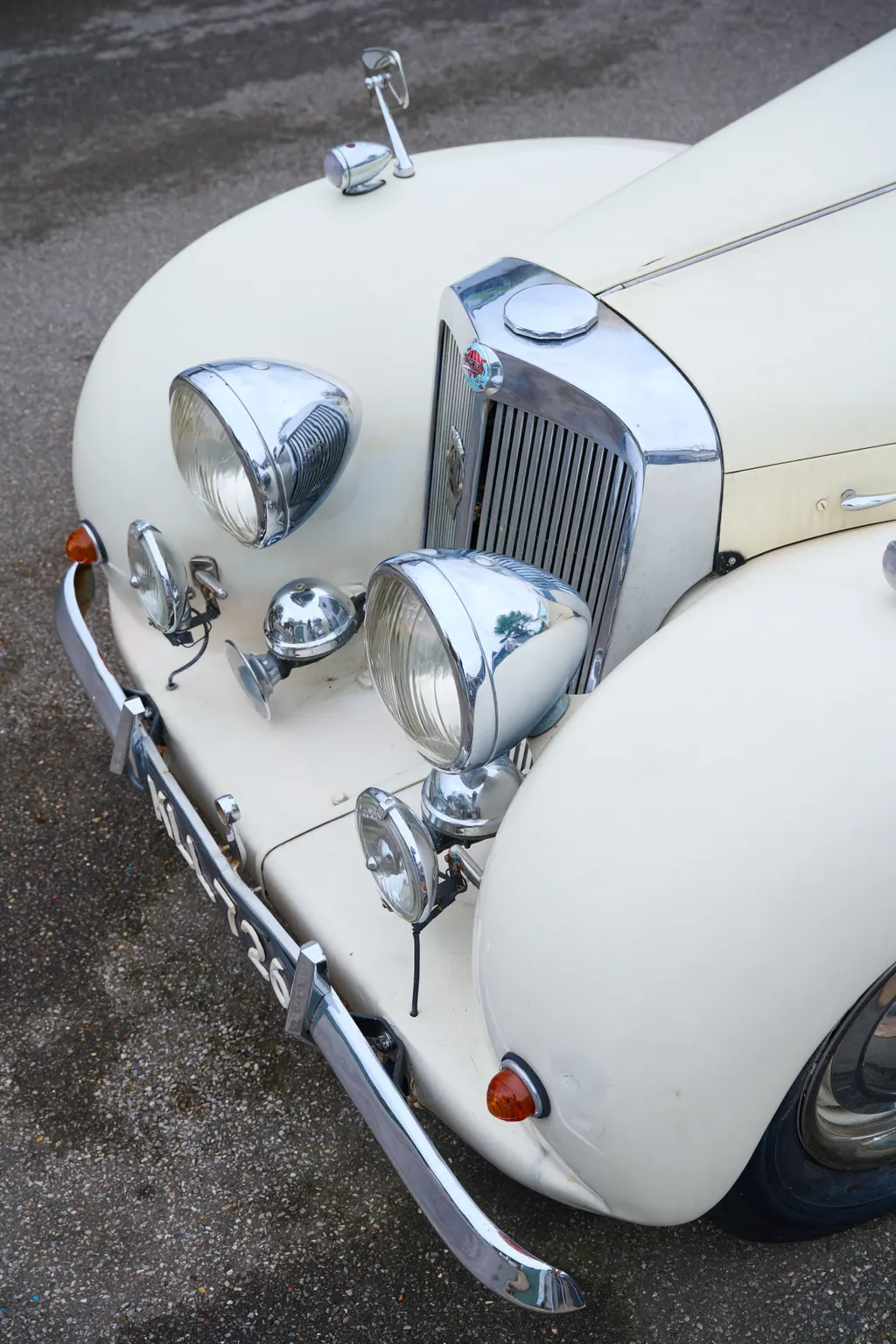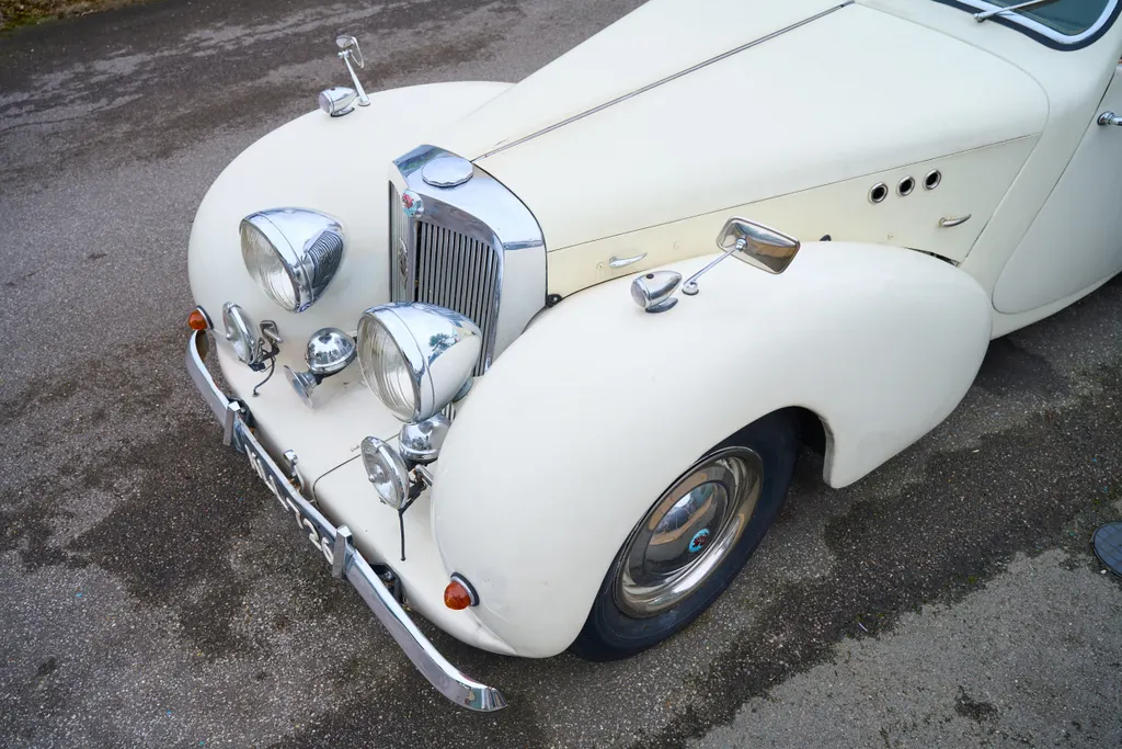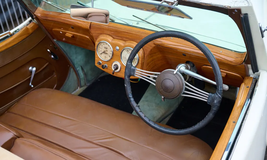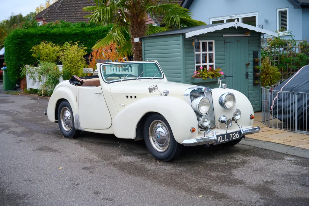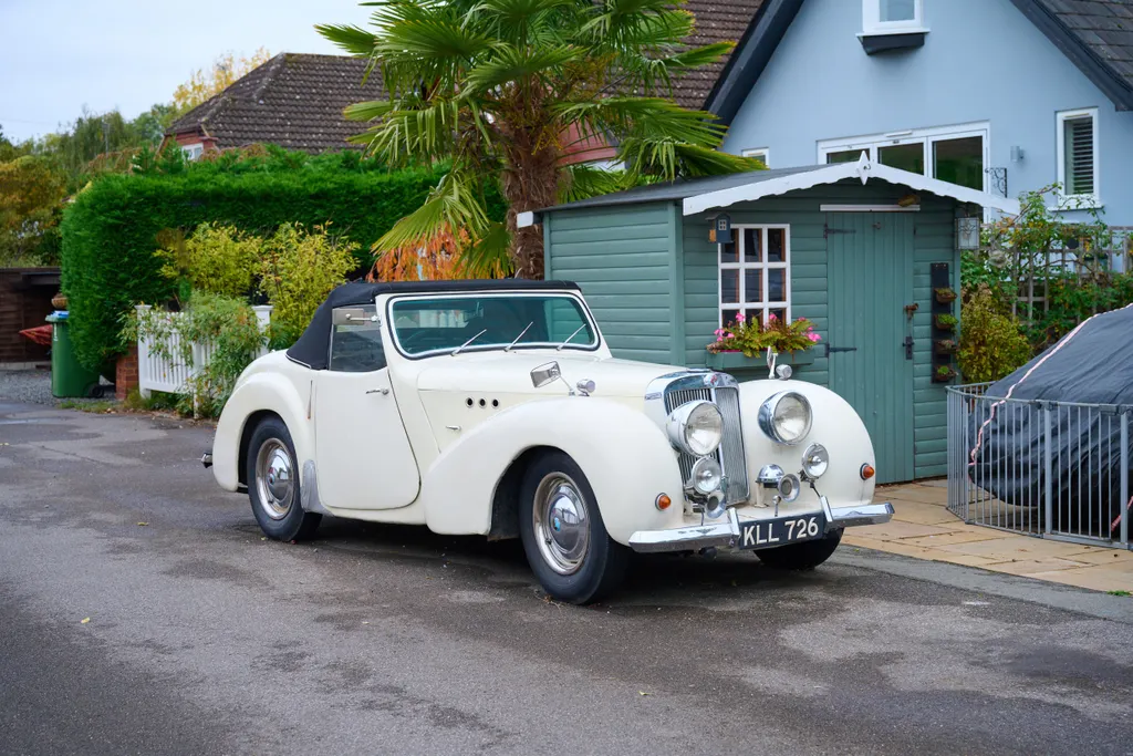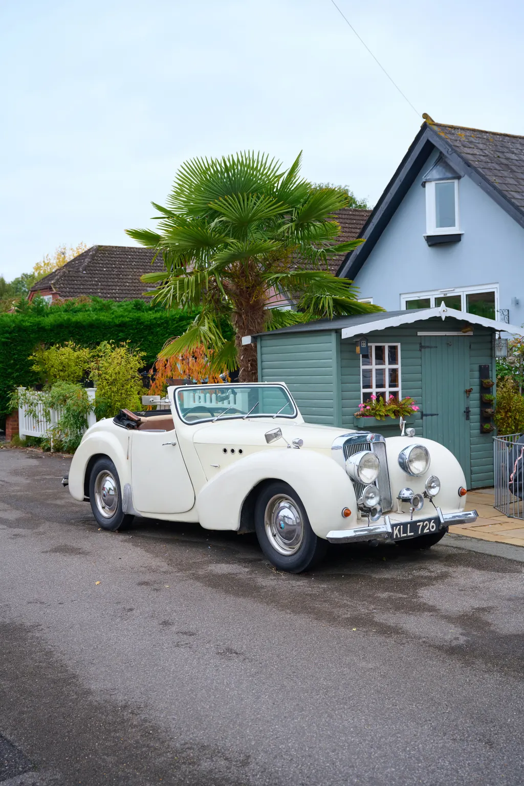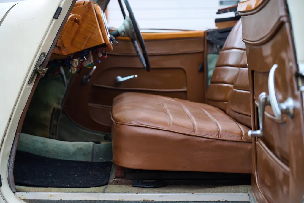 This example is presented in white with a brown interior and has a new black mohair hood. This has been the cherished vehicle of the present owner's late husband who used it as his daily driver up until March/April this year. Although the engine has not run since this time, it does turn over but will need some light recommissioning prior to driving it on the road and therefore we recommend it to be transported away from the auction. These British sports cars are very versatile having the use of the 'dicky' seat to the rear offering seating for two more passengers. The car resided in Belgium for a period of time and was imported back to the UK in 2002 when it was registered with the DVLA. It would appear, owing to a small metal badge mounted to the rear stating CD, that it was owned once upon a time by an individual in the Diplomatic Corp but there is no paperwork to substantiate this. The car has had its new mohair hood fitted recently, and the dashboard and door cappings are in good condition, as well as the seats. It comes with a history file containing various receipts in Belgian and English showing works done in the past. Consigned by James Good