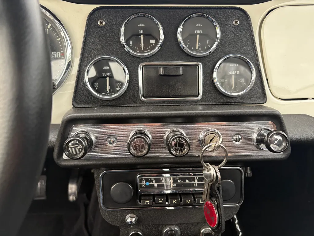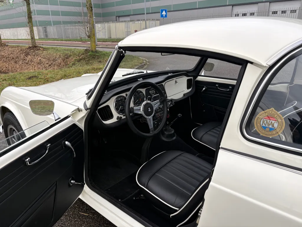 Triumph TR4 from 1963. Old English White with a black interior. This "Matching Number" TR4 was fully restored and overhauled and has driven less than 1,000 km since then. Sublime and excellent are the words that apply when describing the quality. The TR4 is equipped with an original Surrey top and beautiful American Racing rims. Naturally, it features overdrive and a sporty leather steering wheel. Thanks to the stainless steel sports exhaust, this TR4 produces a particularly beautiful sound, allowing you to truly experience the driving experience of a classic sports car from the 1960s. The original white dashboard with its beautiful classic instruments perfectly suits this early TR4. The interior has also been completely refurbished to the original specifications. The 2.2-liter engine performs very well, and with over 100 hp, the acceleration is very impressive. Whatsapp direct : 0031 683240411 Wilco Beijer We speak Dutch, English , German and French. Our cars can be delivered with Dutch, German or Belgium registration. We can assist with the French registration. Transport to your door is possible. We have our own workshop facility with 30 years experience with classic cars.