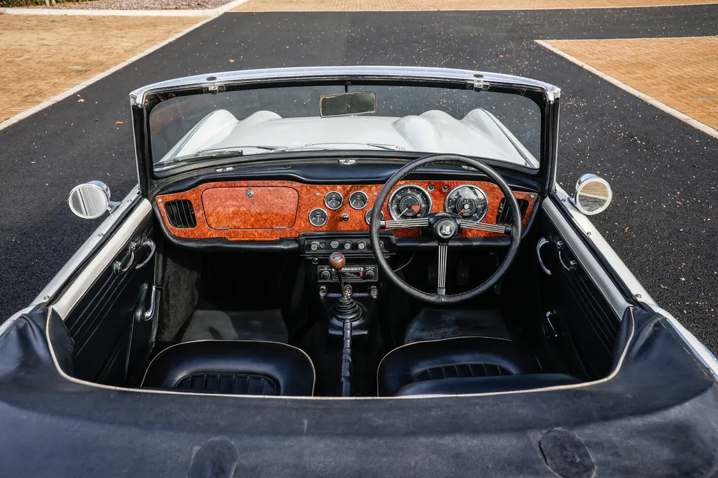 This 1966 Triumph TR4A Convertible was originally built for the left hand drive market and returned to the UK in 2018, where it underwent a comprehensive restoration. Presented in very good condition, it benefits from time spent in dry climates, helping to preserve its bodywork and chassis integrity. It features the later-style chrome side strips, revised grille, and updated indicator lamps, with the classic Michelotti lines still shining through beautifully. Supplied with a V5 registration document, this delightful TR4A has clearly been cherished and well maintained, representing a fine example of one of Triumph's most characterful and desirable 1960s roadsters. Now ready for its next custodian, this car would make a worthy addition to any classic car collection. Consigned by Baljit Singh