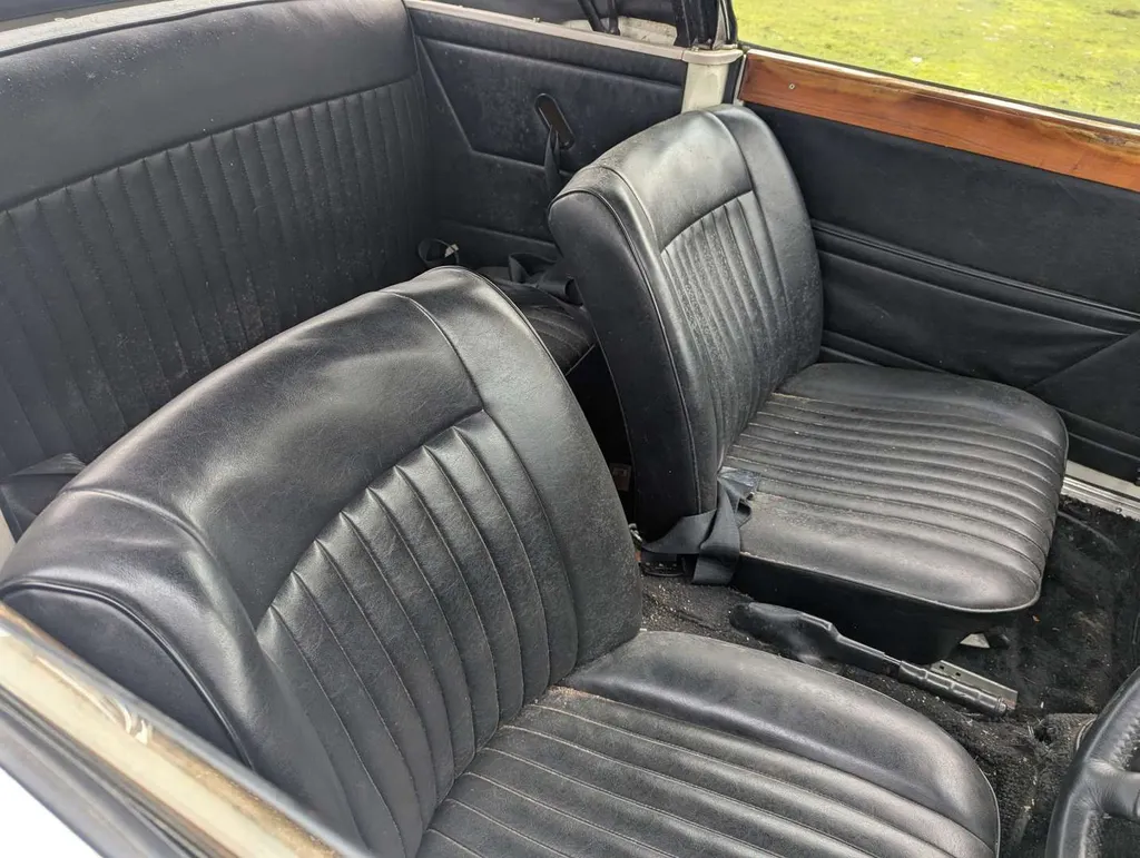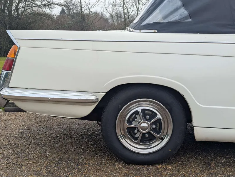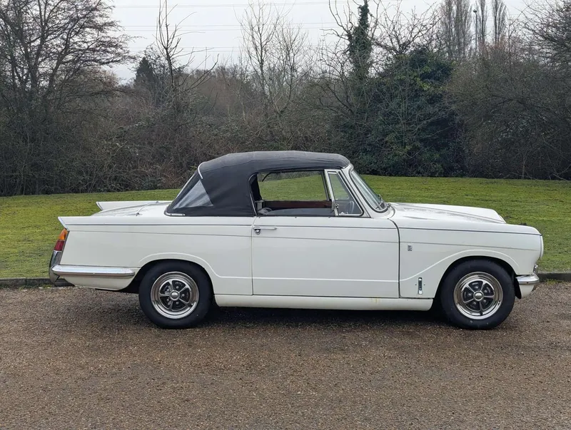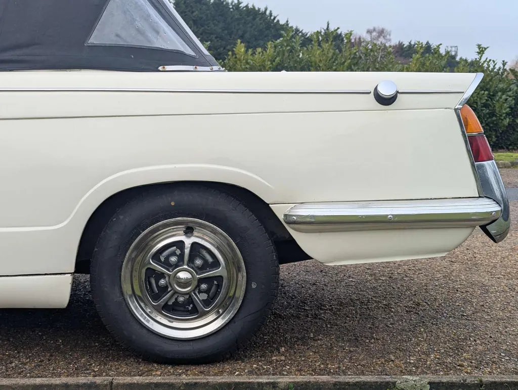 This white Triumph Vitesse was registered to a lady in Berkshire in June 1971, making it one of the last convertibles made before production ended in July that year. The odometer shows 79,664 miles, and there have been only 3 registered keepers from new.The first owner retained the car until 2008, and the vendor has owned it since 2010. In his words: “The car has had a gentle life, and has been stored in a garage for some years. It has been largely recommissioned and is running well, with new tyres, battery and clutch cylinder. The brakes haven't been checked.” The last MoT expired in 2014.It comes with an excellent history file containing maintenance receipts going all the way back to 1971. Some indicate a professional restoration and engine rebuild in the 1990s. Various MoTs, tax discs and sundry paperwork are also present, with a fully-stamped service book recording 14 services up to 58k miles in 1993. Hub caps and a spare set of keys are also included.V5C to follow. Not specified